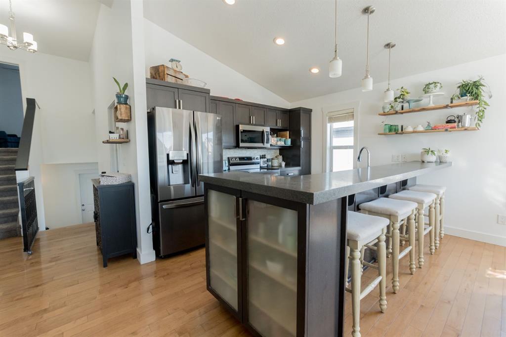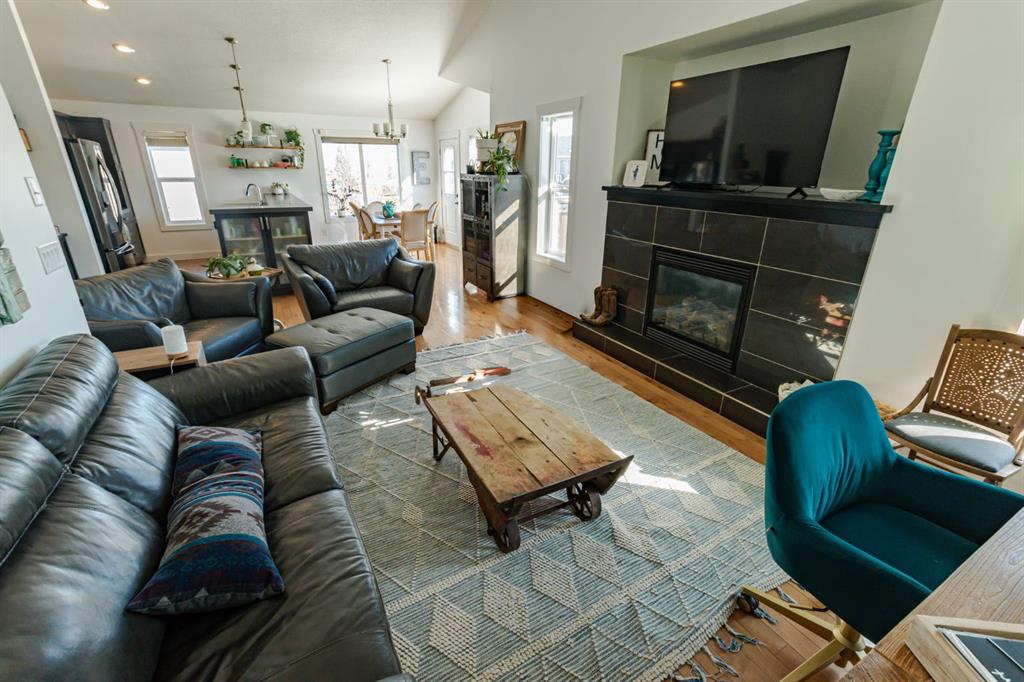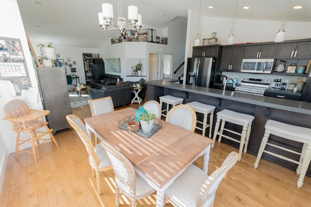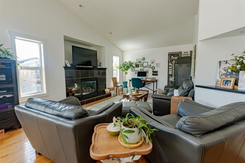 Welcome to this spacious and beautifully designed modified bi-level located in the desirable Pinnacle Ridge neighbourhood close to schools, parks, and all amenities! Offering 6 bedrooms and 3 full bathrooms, this home is perfect for growing families or those needing extra space. The open-concept main floor features a bright living room complete with a cozy gas fireplace, seamlessly flowing into the kitchen. Your kitchen features stainless steel appliances, plenty of cupboards for storage and counter space including an eating bar, plus a dining area with access to the back deck, ideal for entertaining. Two well-sized bedrooms and a full bathroom complete the main level, while the private primary suite above the garage offers a walk-in closet and a 4-piece ensuite. The fully developed basement adds even more living space with a large family room, three additional bedrooms, and another full bathroom. Outside, enjoy a landscaped and fully fenced backyard, along with the convenience of a double attached garage. A fantastic opportunity in a family-friendly neighbourhood, book your showing today!