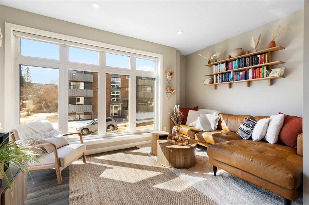 Bright, modern, and beautifully refined. On a corner lot with exceptionally low condo fees. This is inner-city living at its best in the heart of Calgary. Wake up to beautiful eastern sunrises and enjoy natural light all day long thanks to expansive south-facing, floor-to-ceiling windows that flood the home with warmth and energy. Step outside and you’re moments from the vibrant energy of 17th Avenue SW, your morning coffee at Our Daily Brett, and close to all the shops, dining, and lifestyle amenities of Marda Loop. For outdoor enthusiasts, the Bow River pathway system is just 1.5 km away... perfect for runners, cyclists, and evening strolls. This home offers the rare convenience of your own private driveway and an oversized single attached garage (ideal for secure parking, additional storage, or even a home gym setup). Inside, you’re welcomed by a bright and versatile main-floor flex space. Whether you need a home office, creative studio, guest room, or workout area, this space adapts to your lifestyle. Upstairs, the second level is the true heart of the home. Designed with open-concept living in mind, it features a beautifully appointed kitchen with custom cabinetry, a stainless steel appliance package, and an oversized island that’s perfect for entertaining. A dedicated dining area provides space for hosting, while the adjacent living room offers a cozy retreat complete with an electric fireplace. Step outside onto the wrap-around corner balcony... your private outdoor oasis for morning coffee or evening unwinding. A convenient powder room and in-suite laundry complete this level. The top floor is designed for comfort and privacy, featuring two primary bedrooms... each with its own ensuite. One boasts a spacious walk-in closet, while the other offers dual closets with a built-in organizational system, making it ideal for shared living or hosting guests. Stay cool through Calgary’s warm summer months with top-of-the-line air conditioning. Perfectly suited for urban professionals or anyone seeking a low-maintenance lifestyle close to the city’s best amenities, this home combines style, function, and location in one exceptional package. Located in a self-managed fourplex with incredibly low condo fees, this is a rare opportunity to enjoy high-end townhome living without the typical costs.