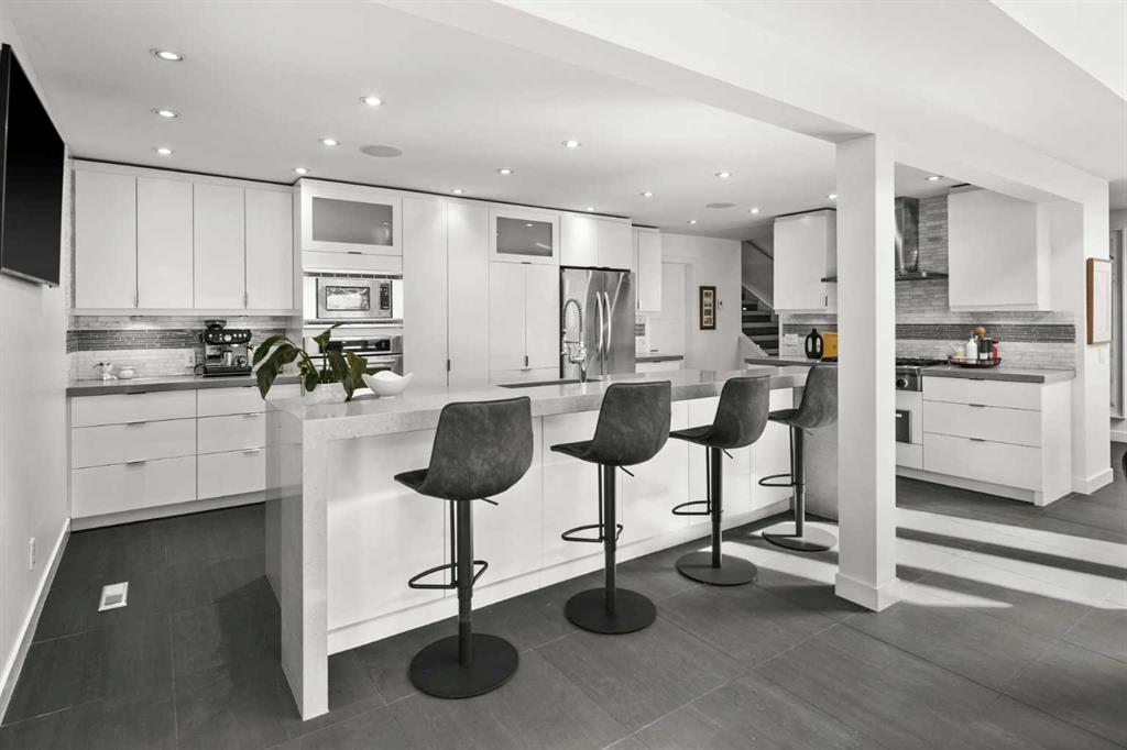 The lower level continues to impress with an additional recreation & entertaining space, a second fireplace & expansive wet bar featuring a wall oven, microwave, wine fridge, & dishwasher. A full bathroom & access to the mechanical room add further functionality. Seamless access to a large west-facing patio with a gas BBQ hookup creates effortless indoor-outdoor living.