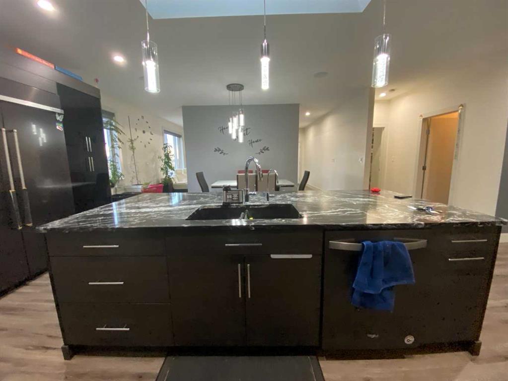 Beautiful home on the lake in Taber! With 3400 sqft of finished living space and 5 bedrooms, this amazing bi-level home has ample room for the whole family! Built in 2020, this home located in Westview Estates was built to a high standard and features a main floor with 9 foot ceilings and large living spaces. A massive 18\'x14\' primary bedroom with full ensuite including jetted tub, and walk in closet are also included on the main floor as well as a 2 piece bathroom with laundry. Watch the sun set from the large 18\'x12\' covered deck in the back that looks out over Westview lake that has full glass walls to protect you from the wind while still maintaining the view. If you\'re looking for a different space to enjoy your morning coffee, you also have the option to sit on the 13\'x12\' covered deck at the front of the house that you access from the upper level where you will also find 2 additional bedrooms and a full bathroom. In the basement, you will love the absolutely massive 32\'x21\' family room that includes a wet bar. Attached to the family room is a dedicated tv/theatre room, another full bathroom and 2 more bedrooms, which could also double as an office. Walk out of the basement family room to a covered patio and the backyard that leads to the green space, park and lake! Extra features for this home include central A/C, an HVAC systems that is zoned individually for each level, built in sound system, quartz countertops, water filter, widow coverings (with some automatic), garburator, heated double garage and underground sprinklers. This home has so much value and a lot to offer, you need to take a look!