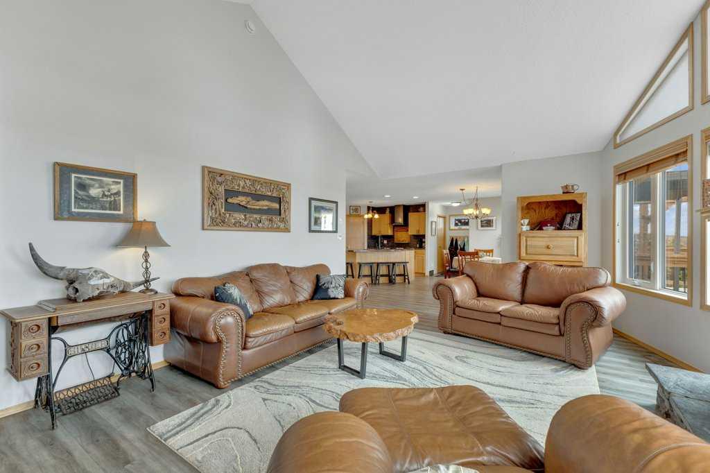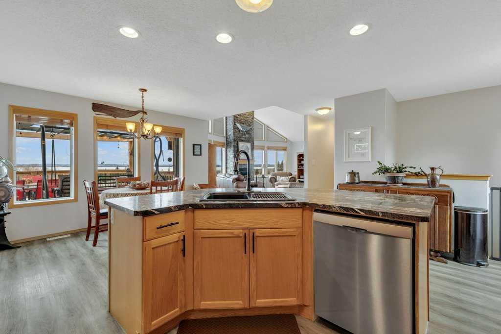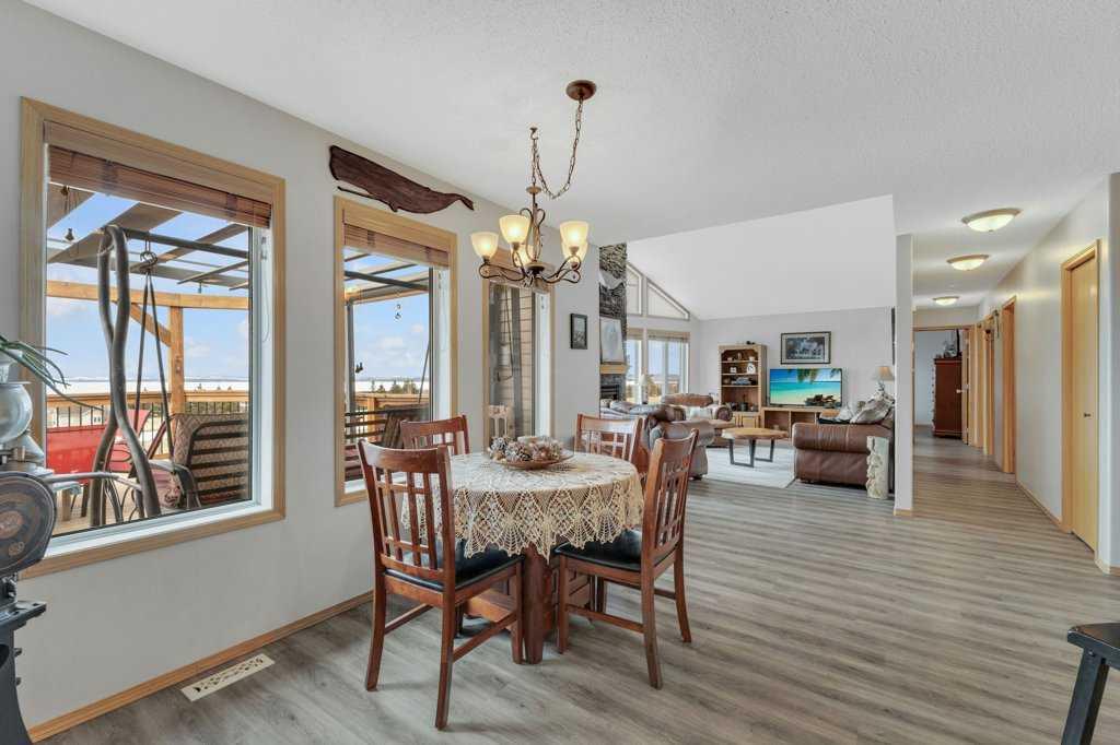 Overlooking Gull Lake, enjoy breathtaking lake views, stunning sunsets, and even a glimpse of the mountains on a clear day. This beautiful 1300 sq ft home features 4 bedrooms and 3 bathrooms, with an open-concept kitchen and dining area complete with a large island and walk-in pantry. The living room showcases a vaulted ceiling and a striking stone fireplace, perfectly framing the floor-to-ceiling windows that capture the lake view. The fully finished basement offers a spacious family room, an oversized bedroom with ensuite, a cold room, and a massive storage area with potential to be converted into an additional bedroom or living space. Upgrades include 4 front room windows with 25 yr warranty, flooring, paint, countertops throughout kitchen and bathrooms. septic pump (2 yrs), dishwasher & stove.The property has been thoughtfully and meticulously landscaped with a massive deck off the front of the home, lilacs lining the perimeter fence, and birch and poplar trees providing added shelter and privacy. You’ll also find apple and cherry trees, along with a beautifully designed garden area with 6 ft fence, featuring raised asparagus and strawberry beds, gooseberries, saskatoons, and plenty of room for vegetables. Garden area includes a garden shed/chicken coop, along with underground water lines servicing the garden and trees. Double car garage with added green house is conveniently situated close to the garden. This home must been seen to be appreciated. Most of the photos are summer pictures to capture the real essence of this property. This property offers your own personal retreat!. Don\'t wait to view this one!