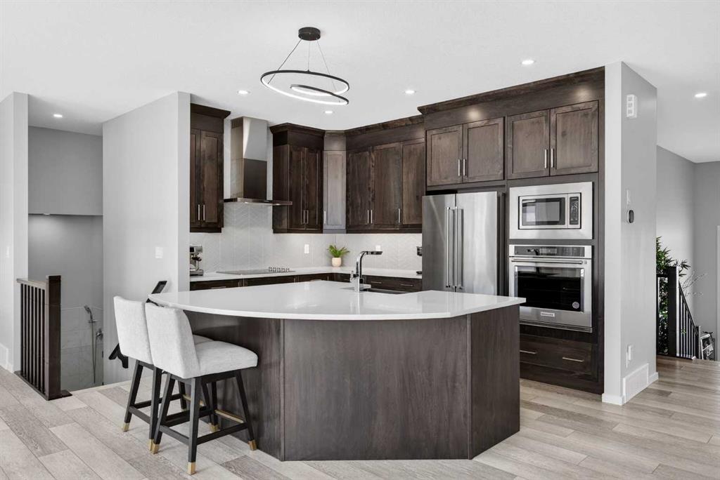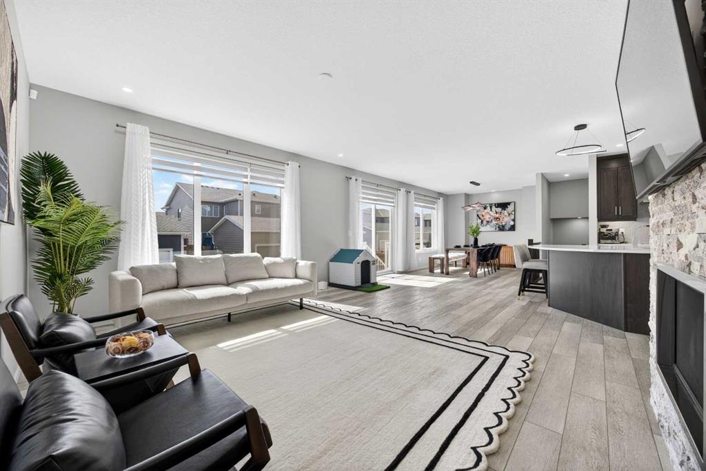 WOW! I don\'t even know where to start with this amazing home! So much space and room to grow in this IMMACULATE home that still shows like brand new! As you enter the home you are greeted with a spacious entrance and as you come up a few stairs to the main living areas you have a convenient private office space, a WIDE OPEN floor plan in the kitchen, living room and dining areas! The kitchen is a chefs dream with a HUGE island, quartz countertops, loads of cabinet space, cooktop, built in wall oven, central sink in the island, chevron style backsplash, a walk in pantry and upgraded lighting! The living room features a floor to ceiling stone wall where the gas fireplace ties in seamlessly, beautiful vinyl flooring throughout the main floor, a generous sized dining area that can accommodate a massive table if needed and there is access to the back yard from the living/dining areas! As we make our way upstairs you have a totally separate and HUGE bonus room with soaring vaulted ceilings and tons of natural light! As we keep going upstairs to the bedrooms there is an upper level laundry room with a sink , the primary bedroom is awesome and it has a sunny south exposure, a walk in closet that is massive and the ensuite bathroom has dual sinks, quartz counters, soaker tub and a separate shower! The remainder of the upper level features THREE more bedrooms (all a great size!) and another full bathroom with dual sinks as well! As if that wasn\'t enough we ALSO have a fully finished basement with a side entrance, kitchen area (no stove) but there is a second fridge, additional washer and dryer, tons of storage and a 5th bedroom as well as a large living area that could be suited in the future if needed. This home has it ALL - in addition to all of this there is also a professionally built dog wash area in the mudroom, south facing back yard that will have brand new sod installed soon, a double front attached garage, super close and convenient to all of the areas amenities, schools, parks, playgrounds, golf courses, Stoney and McLeod trails! This home is one of the special ones you don\'t see very often and is ready for the new owners to love it as much as the current ones do! Don\'t miss this one!