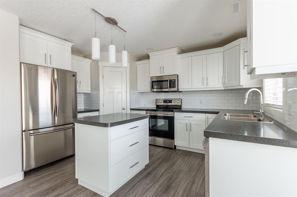 Quality built by Harder Builders, this up/down property is set up to attract strong tenants and consistent rental income. The upper unit feels open right from the main level. A large living room is centred around a gas fireplace, with a big window that brings in plenty of natural light. It flows easily into the dining area and kitchen, where white cabinets, stainless steel appliances, an island, and a pantry sit. All bedrooms in the upper unit are located upstairs, which helps provide some privacy and noise separation between both units. The primary bedroom is a generous size with multiple windows, and the ensuite is a standout feature with dual vanities, a jetted tub, separate shower, and a walk-in closet. This setup tends to attract longer term tenants who value a bit more comfort. A main floor half bath and separate laundry add convenience, and the double heated garage is a strong bonus, especially in colder months. The lower unit has its own well laid out living space with a living room that connects to the kitchen, finished with white cabinetry and stainless steel appliances. Two bedrooms, a full bathroom, and separate in-suite laundry make it a fully independent setup. It currently rents for $1,825 per month, including utilities., lease till Oct 31, 2026. Gas is separately metered, while power and water are shared at this property. Outside, the fenced yard and deck off the upper unit give tenants access to private outdoor space to enjoy in the warmer months and appeals to tenants with pets and kids alike. Located close to schools and parks, this is a well kept investment property with features that help attract and retain quality tenants. Call your REALTOR® today to book a showing!!