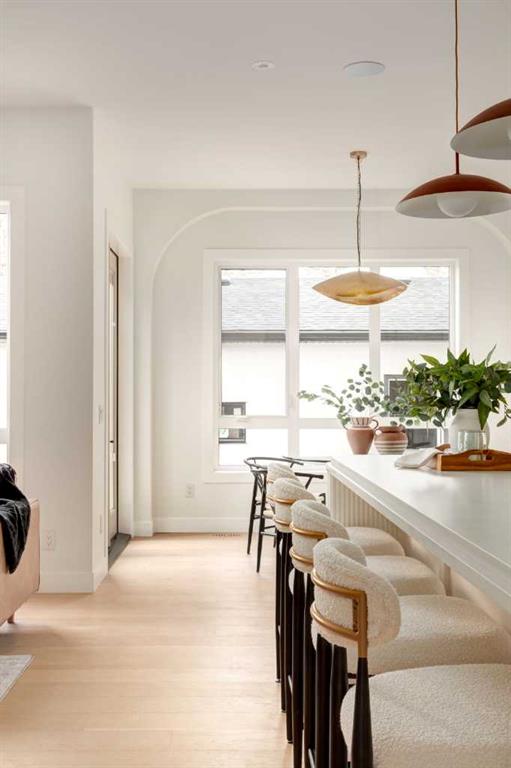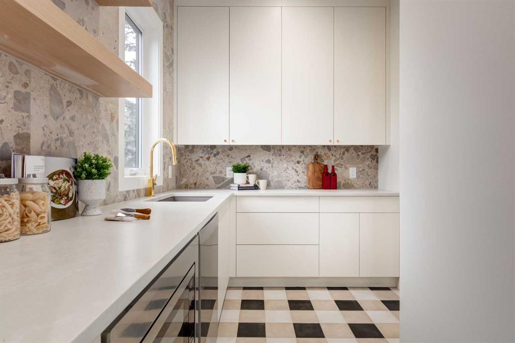 Welcome to 8812 33 Avenue NW, a brand-new luxury home by Platinum Build Homes, designed by Maxime Chin Designs, located on a wide lot in the sought-after community of Bowness. Offering nearly 3,800 sq ft of developed living space, this thoughtfully designed residence combines modern elegance with functional family living. The main floor features 10 ft ceilings and a bright, open-concept layout. A front office with custom built-ins sits behind French doors, while a stylish powder room adds a designer touch. The living room is anchored by a feature fireplace and large windows overlooking the private backyard and deck. The chef-inspired kitchen showcases white oak cabinetry, a quartz island, premium appliances, and a butler’s pantry, seamlessly connecting to a mudroom with additional built-ins. Upstairs, the primary suite offers a vaulted ceiling, a walk-in closet, and a spa-like 6-piece ensuite complete with a soaker tub and steam shower. Two additional bedrooms share a 5-piece bathroom, and a bonus room and upper-level laundry provide added convenience. The fully finished basement is ideal for entertaining and everyday living, featuring a spacious recreation room with a wet bar, a home gym, two additional bedrooms, a 4-piece bathroom, and an extra powder room. Additional highlights include dual furnaces, ceiling speakers, and a built-in security system. Enjoy a prime location just minutes from the Bow River pathways, Bowness Park, schools, and downtown Calgary. Backed by Alberta New Home Warranty, this move-in-ready home offers an exceptional opportunity to own a high-quality new build in a vibrant inner-city community.