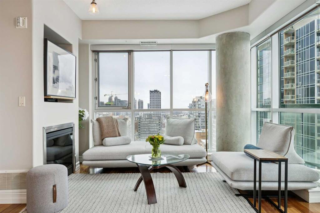 Welcome to #1701 in the Emerald Stone, an iconic concrete tower in the Beltline that has one of the best walkability scores in the city. Unit 1701 is a special home. What blew me away when I first walked in was the expansive view out the floor to ceiling windows. You get everything from a mountain view to the west, a south view over the vibrant 17th avenue entertainment district, and an eastern view of the city’s downtown skyline. Beautiful in the daytime, and magical at night, the view can’t be beat. Next, the floor plan is great, featuring an upgraded kitchen with new appliances, quartz counters, and backsplash that is open to the rest of the living area. A dedicated dining space, as well as a cozy living room with a fireplace complete the main area. The balcony is phenomenal. In fact, the 17th floor is the start of the full size balconies in the building. Lower floors don’t get this much outdoor space. There are two bedrooms in #1701, including a primary suite with a full ensuite. Also, California closets have been used to upgrade the bedroom storage spaces. The building itself has an extensive amenity package including a weekday concierge, a high-end fitness facility, and a refined social lounge for hanging out if you need more space for a party, or just a social gathering. Secure underground parking and extra storage also come with this home. The “walk-score\" for the Emerald Stone is one of the best in the city, with the boutiques of Mount Royal Village and the heartbeat of 17th Avenue right out your front door. For more details, and to see our 360 Virtual Tour, click the links below.