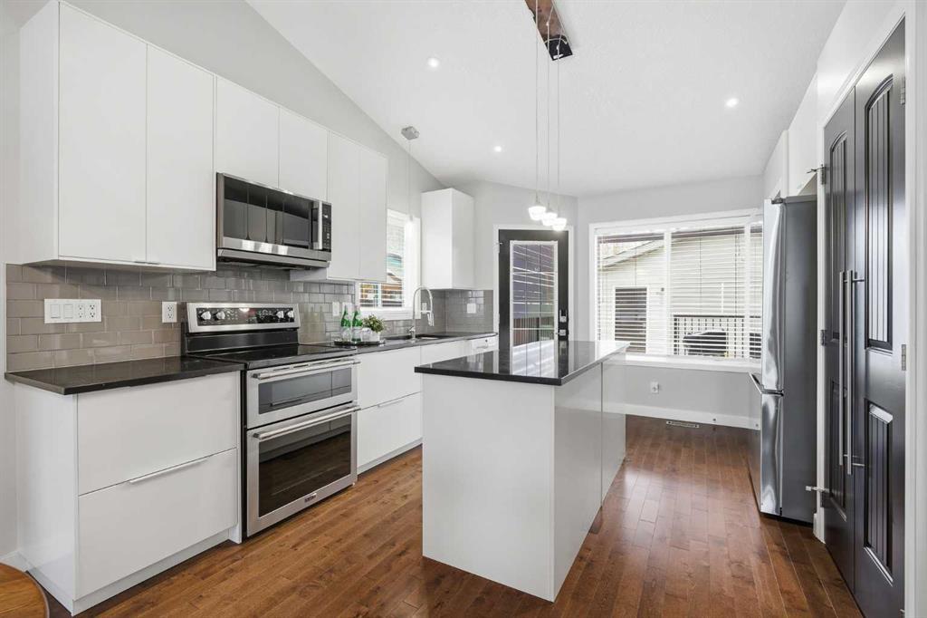 Fall in love with this beautifully renovated and modernized 3-level split in the heart of Silver Creek, where warmth, light, and thoughtful design come together effortlessly. From the moment you arrive, the home’s standout curb appeal and inviting front porch with composite decking (2024) set the tone. Inside, the bright, open-concept main floor features soaring vaulted ceilings, rich hardwood floors, and an abundance of natural light, flowing from the welcoming living room into a cozy dining space and a stunning kitchen with white cabinetry, quartz countertops, upgraded appliances, a large island, and double pantries—all finished in a timeless neutral palette. Upstairs offers two spacious bedrooms, a stylish 4-piece bath, and a serene primary retreat with a walk-in closet, additional storage, and a private 3-piece ensuite. The fully finished lower level adds valuable living space with a cozy family room and gas fireplace, a third bedroom, and a 3-piece bath with laundry, complete with durable vinyl plank flooring. Outside, enjoy a true gardener’s haven with a large garden area and a private backyard featuring a nicely sized deck with pergola and privacy wall—perfect for relaxing or entertaining. The oversized, insulated and drywalled double detached garage and RV parking add everyday ease, flexibility, and room for all your lifestyle needs. Numerous updates complete the home, including furnace (2022), hot water tank (2025), washer and dryer (2022), fridge (2025), stove (2023), new microwave/hood fan (April 2026), composite decking (2024), and solar panels (2024). Ideally located near parks, pathways, and shopping, this home offers the perfect blend of style, comfort, and everyday convenience.