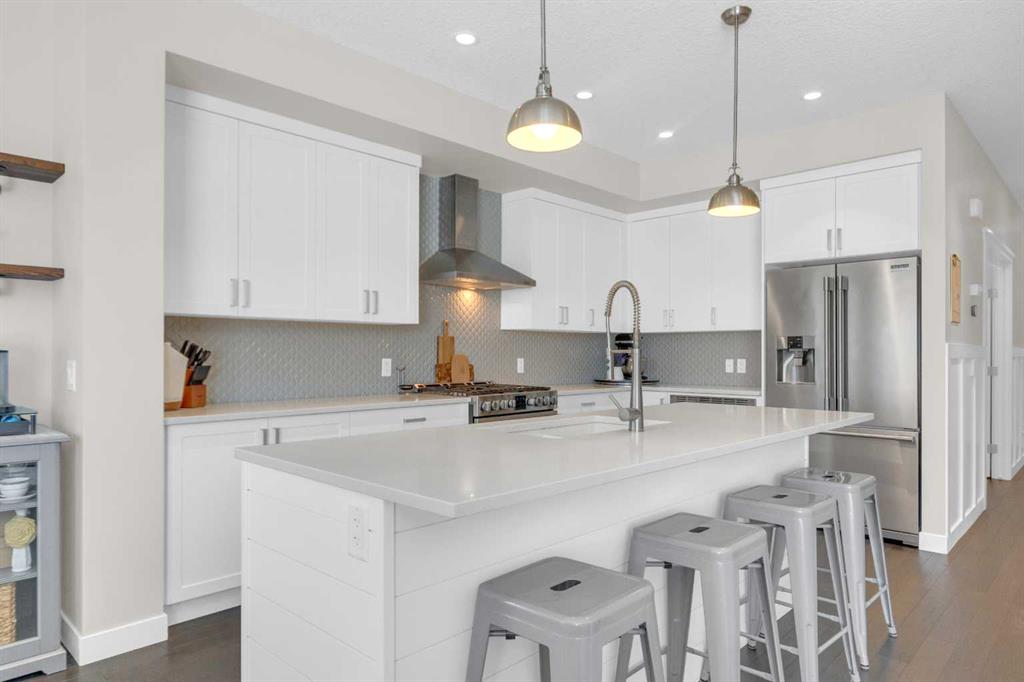 **Open House Sunday April 19 @ 12 - 2 pm** HOME SWEET HOME! Welcome to this breathtaking, beautifully upgraded home showcasing 2,889 SQFT in one of Calgary’s most sought-after and premiere lake community of Mahogany. This extremely spacious and flawless open concept 5 bedroom, 3.5 bathroom floor plan is thoughtfully crafted for growing and multi-generational families alike. As you step inside the home you well immediately notice the 9ft ceilings and luxurious hardwood flooring throughout. The chef-inspired kitchen is both stylish and functional, complete with quartz countertops, stunning center quartz island, premium stainless steal appliances; including a gas range and a pantry perfect for all your storage needs. As you move into the expansive living room, enjoy the bright natural light flooding the space through large windows and a cozy, gas fireplace for those cold days. One of the standout features of this home is the rare main floor primary retreat, complete with its own private ensuite, ideal for extended family, guests, or convenient single-level living. A versatile flex room on the main floor offers the perfect space for a home office, den, or study. Upstairs, you’ll find a second luxurious primary retreat with a spa-inspired ensuite, large walk-in closet featuring built ins, along with a three additional generously sized bedrooms providing incredible flexibility for families of all sizes. You will also find a large bonus room, the perfect entertainment spot for families to come together at the end of a day and convenient upstairs laundry. The unfinished basement offers endless future potential with a full-size footprint with an exceptional layout, ready for your future development ideas—whether that’s additional living space, a home gym, or income potential. For those summer days, step outside to the south facing backyard to enjoy the fully built rear deck, complete with a BBQ gas line, pergola and hot tub —perfect for summer evenings and entertaining. Located just moments from Mahogany’s private lake, pathways, parks, schools, restaurants, public transportation and amenities, this home offers not just a place to live, but a lifestyle to love. MUST VIEW! Don’t miss out on lake community living and book your private tour today!