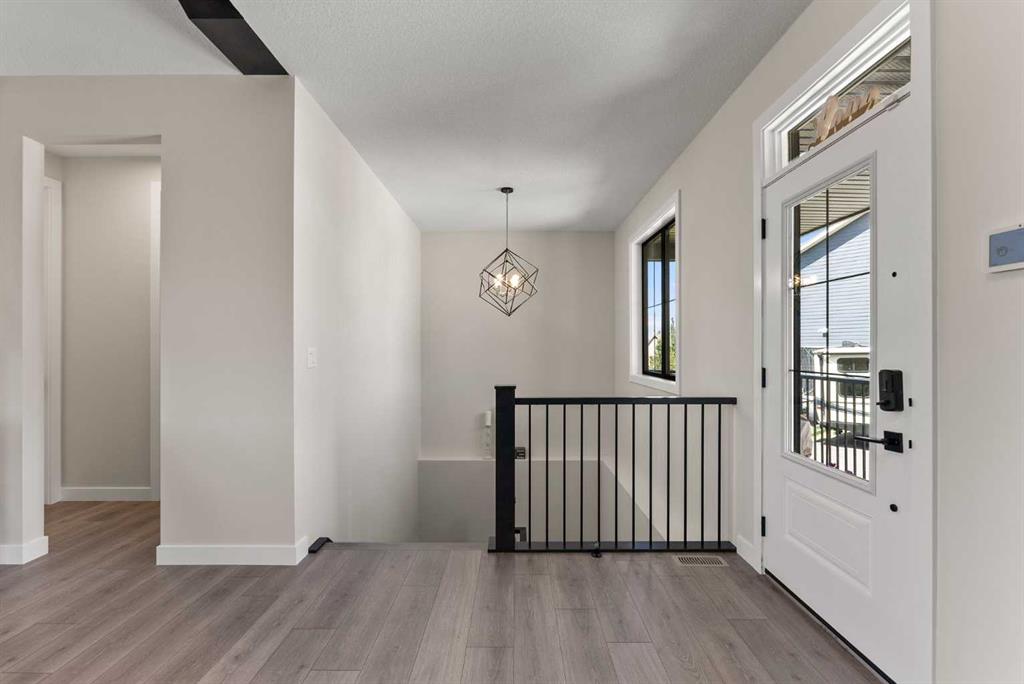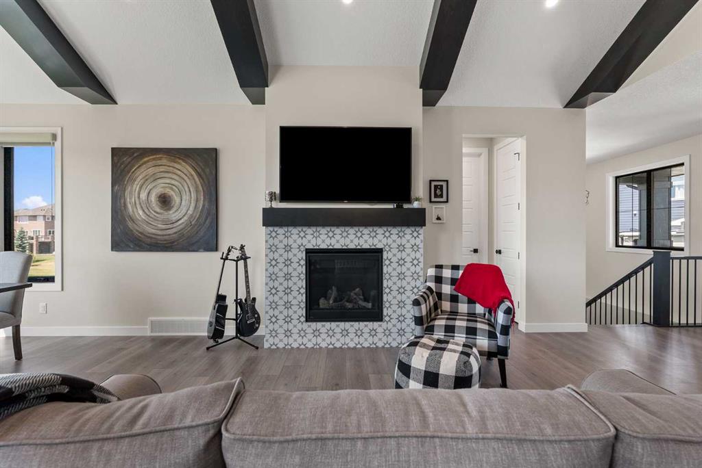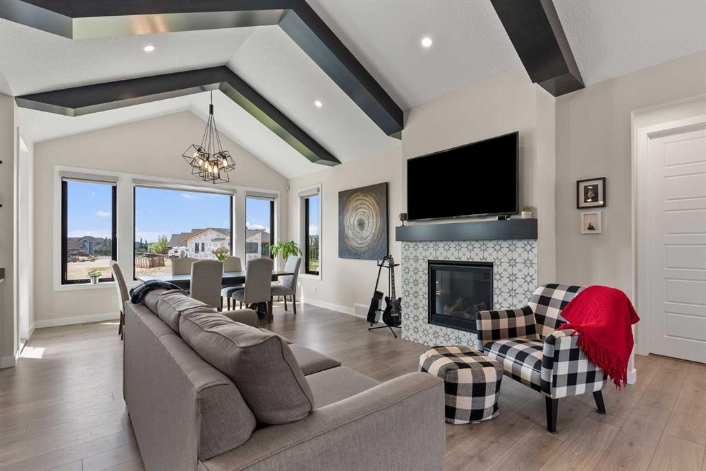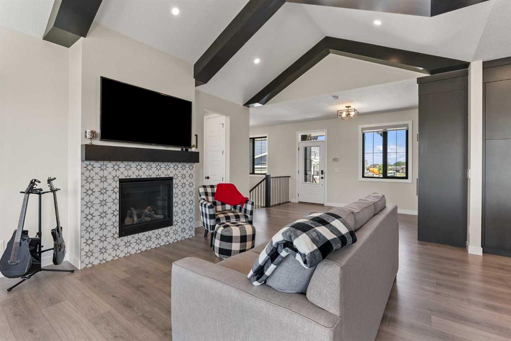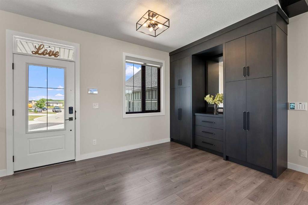 Discover this exceptional home just outside Cochrane in Monterra. Offering nearly 3,400 sq ft of thoughtfully designed living space on a expansive 0.45-acre lot, it delivers the high-end essentials buyers expect. The main floor presents an open, airy layout with vaulted ceilings that create a bright, inviting atmosphere. The chef’s kitchen features a large island and soft-close cabinetry, seamlessly flowing into the dining and living areas—ideal for hosting family and friends. The primary suite serves as a private sanctuary, highlighted by an elegant ensuite that includes a soaker tub, a shower, and dual vanities, complemented by a generous walk-in closet with built-in organizers. Convenience is evident with a well-appointed laundry room located along the corridor to the heated, insulated triple garage. Step outside to expansive decks—12x28 feet on both levels—perfect for outdoor entertaining. The lower deck includes a hot tub, offering a relaxing retreat with stunning mountain views. Throughout the home, you’ll find custom built-ins, including a dedicated office with custom cabinetry and a built-in pantry for ample storage.