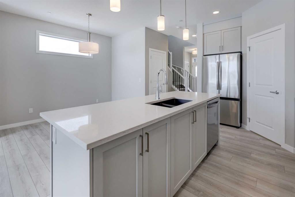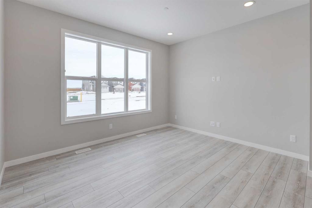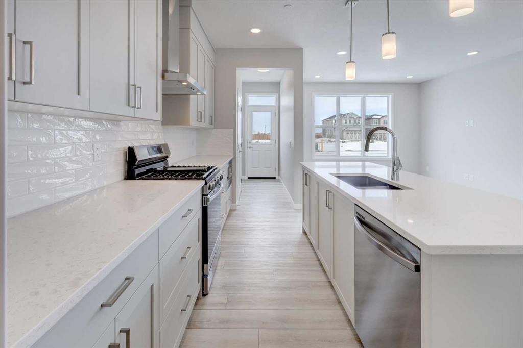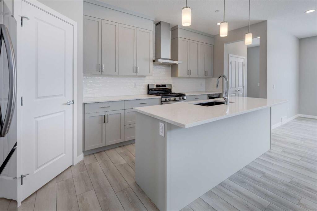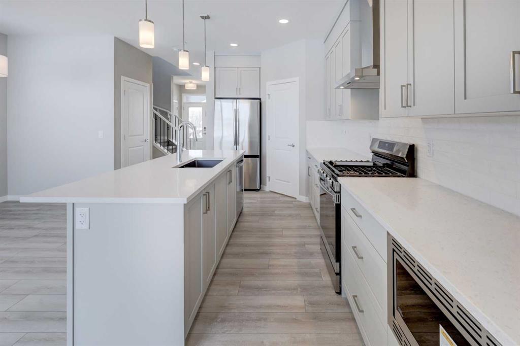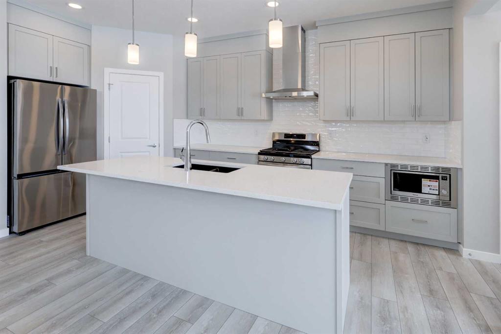 FIRST TIME BUYERS may qualify for the new GST REBATE PROGRAM. Welcome to the charming new community of Princeton – nestled just south of the TransCanada Highway and west of Garden Road, offering effortless access to both Calgary and Chestermere while striking the perfect balance between serene country living and urban convenience; surrounded by parks, schools and future retail spaces, Princeton is an ideal place to call home. Introducing the BELLEVUE by EXCEL HOMES – a gorgeous BRAND NEW, NEVER LIVED IN home offering 1785 SF of thoughtfully designed living space filled with natural light from an abundance of windows. Designed with families in mind, this home features FOUR BEDROOMS ABOVE GRADE, including a rare main floor bedroom with full bath, plus three generous bedrooms upstairs. Main floor mud room helps keep daily life organized. The kitchen is beautifully appointed with over-height cabinetry, pot & pan drawers, pantry, large island, engineered stone countertops and stainless steel appliances including gas range, built-in microwave and chimney hood fan. The family-sized dining nook and spacious great room are open to the kitchen and overlook the backyard, creating the perfect layout for entertaining and everyday living. The main floor showcases 9’ knockdown ceilings, luxury vinyl plank flooring and a neutral, thoughtfully curated color palette. Staircase with metal rails leads upstairs where you’ll find three generous bedrooms including a stunning primary suite with a huge walk-in closet and spa-inspired ensuite, a central bonus room with vaulted ceilings, convenient upper laundry and a full 4-piece bath. This home also offers a REAR DOUBLE CONCRETE PARKING PAD and is CERTIFIED BUILT GREEN WITH PLATINUM RATING (that\'s a BIG deal), featuring energy-efficient upgrades including low-E windows, Energy Star appliances, low-flow toilets and faucets, and is uniquely SOLAR READY. Added peace of mind comes with a SPRINKLER SYSTEM TO THE MAIN AND UPPER FLOORS, plus sprinkler heads in the basement. SEPARATE SIDE ENTRY TO BASEMENT! Quick possession is available!