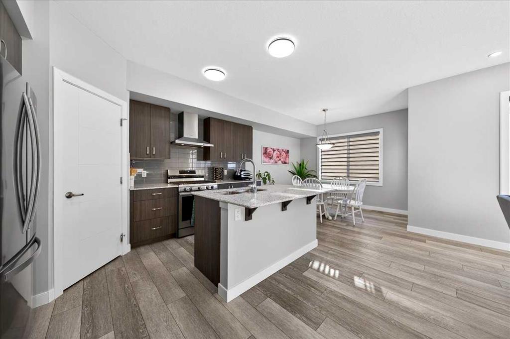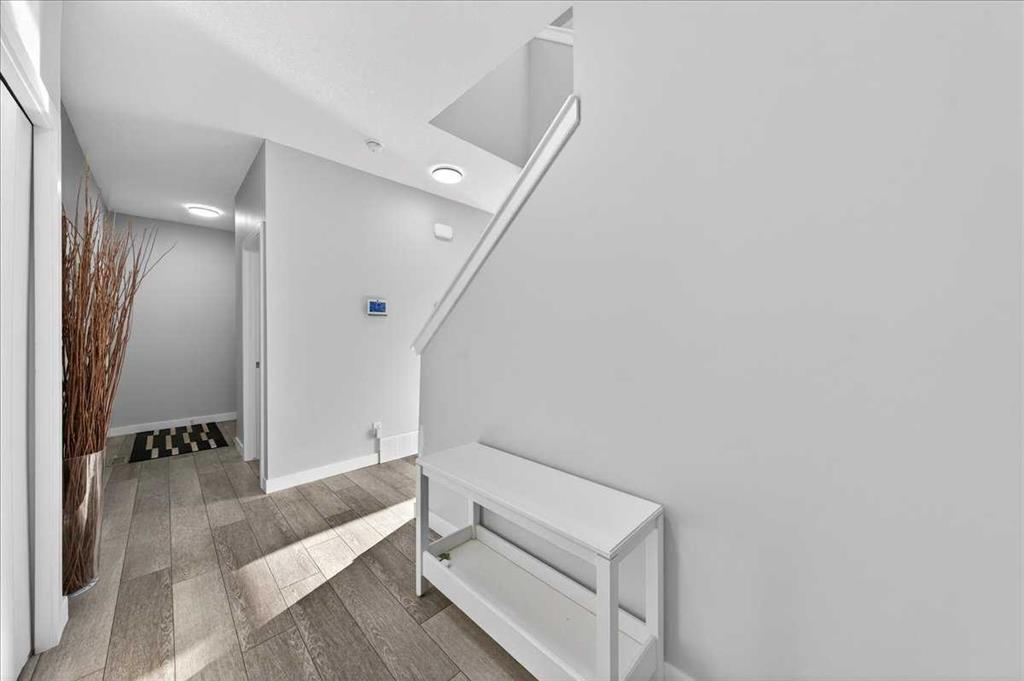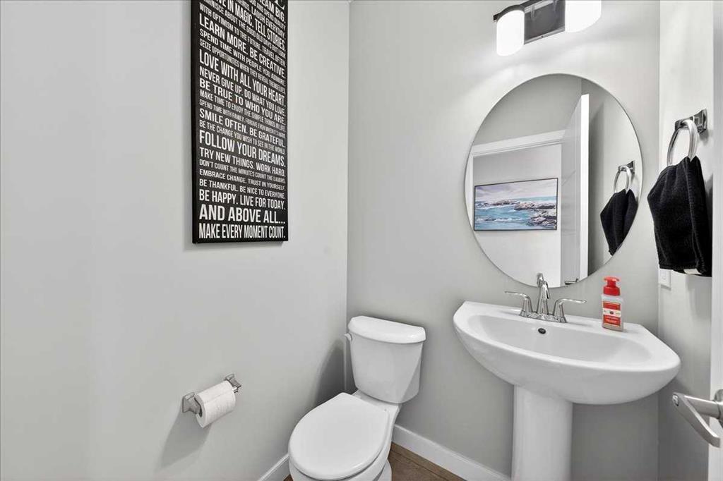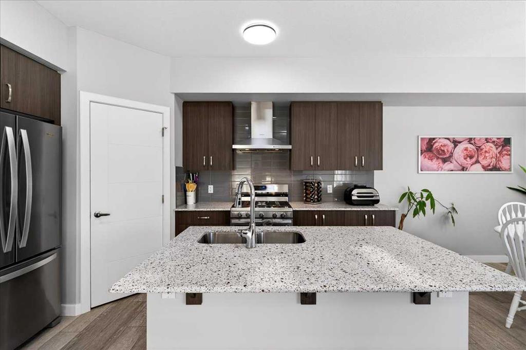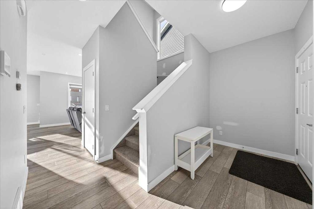 Welcome to Belmont, a thoughtfully designed two-storey home offering 1,706 sq ft of comfortable and functional living space. This beautifully upgraded home features 3 bedrooms and 2.5 bathrooms, perfectly suited for modern family living. The main floor boasts a bright rear dining nook and a spacious living room filled with natural light, flowing seamlessly from the upgraded kitchen. Enjoy quartz countertops, stainless steel appliances including a built-in microwave and gas stove, a large island, and a convenient walk-in pantry—ideal for both everyday use and entertaining. A practical mudroom and 2-piece bath complete the main level. Upstairs, you’ll find a central bonus/family room that provides a great space for relaxing or gathering, along with a full laundry room for added convenience. The private primary bedroom features a walk-in closet and a 3-piece ensuite, while the additional bedrooms also include their own walk-in closets, offering plenty of storage for the whole family. The basement is undeveloped and includes a separate side entrance, providing excellent potential for future development or rental income, subject to city approvals and permits.