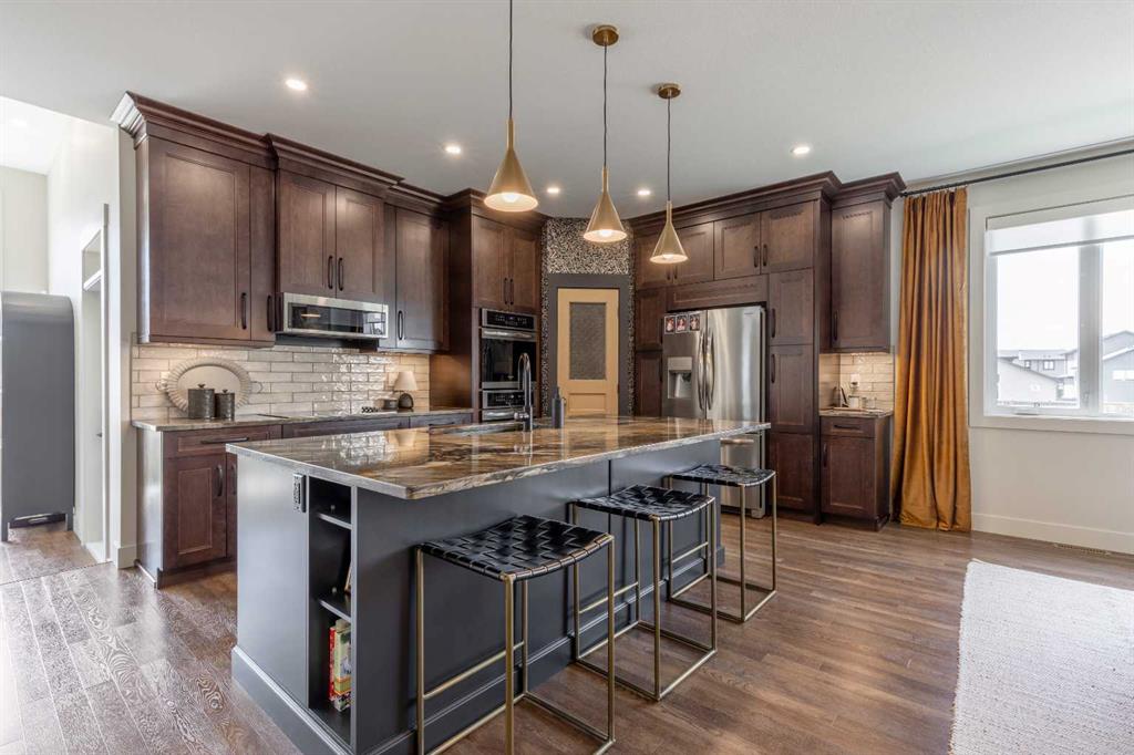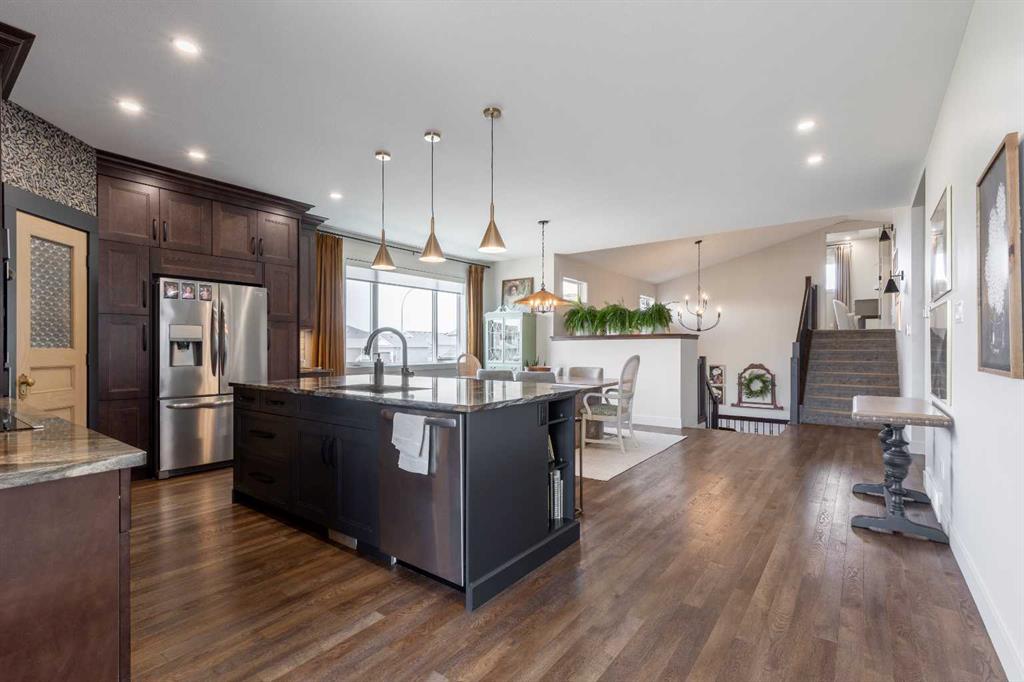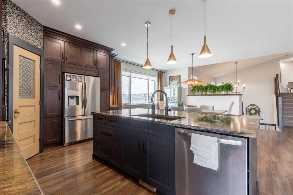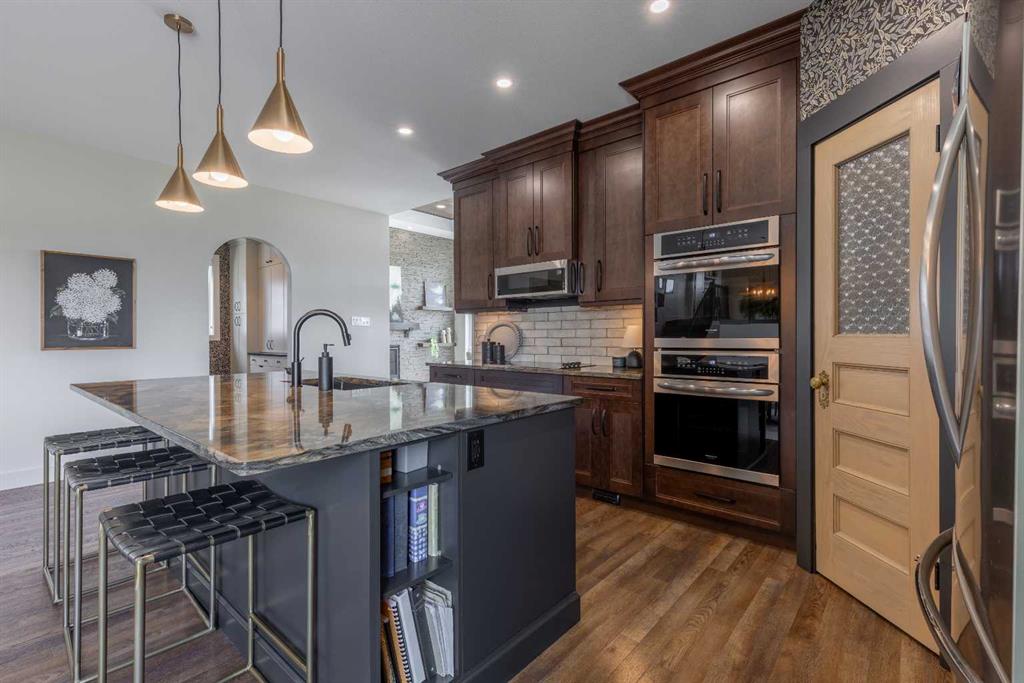 This home is stunning from top to bottom! If you\'ve ever wanted to live inside an Architectural Digest home, this is it. Thoughtfully renovated to maximize functionality and style, this custom bi-level + bonus offers a unique floor plan that is elegant with high-end, custom finishes galore and plentiful parking! The entry is a show-stopper; covered verandah, soaring ceilings and a grand entry into a 1,454 sq/ft main floor. The open concept entertaining space includes a statement kitchen with luxurious granite counter tops, two wall ovens, a perfectly planned corner pantry with thoughtful shelving for your kitchen goods but that isn\'t to mention the custom butlers pantry with secondary fridge, appliance garage and plentiful storage space - a dream come true! The sunken living room is warm and cozy, with a statement stone wall, gas fireplace and tray ceiling complete with wood inlay. The back deck is covered and enclosed with screens that are retractable; you\'re able to enjoy the weather with complete privacy! There is a bedroom, 4 piece bathroom that was recently upgraded and laundry room rounding out the main floor. Taking the steps upstairs you are welcomed into the primary retreat - an oasis meant for a Queen! Tray ceiling, 5 piece ensuite with tiled shower, soaker tub, toilet closet, custom wooden walk-in closet and a stylish place to enjoy. The fully finished basement offers 9\' ceilings, a wet bar with quartz counters in the family room, 2 well sized bedrooms, 4 piece bathroom and storage area. The attached triple garage is heated, there\'s AC, vinyl fencing and you simply have nothing left to do but move in and love every minute of it!