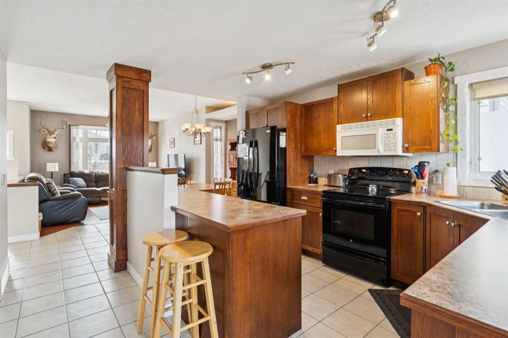 The fully finished basement is a standout feature, boasting 10’ ceilings that create a bright, airy feel rarely found below grade. Cozy up in the recreation room beside the gas fireplace, or host unforgettable gatherings with the built-in bar area—perfect for game nights or relaxing evenings in. Outside, you’ll find an oversized, overheight double detached garage with plenty of room for vehicles, hobbies, and storage. There’s also dedicated RV or boat parking pad alongside the garage, making this home a dream for adventure lovers. Location is everything, and this one delivers. Enjoy the convenience of being within walking distance to schools, beautiful Nose Creek Park, and a nearby amenities hub featuring a 7-Eleven, pizza, dining options, and even a dance studio. Whether you’re entertaining, relaxing, or exploring the neighbourhood, this home checks all the boxes—with style to spare. Book your showing today!