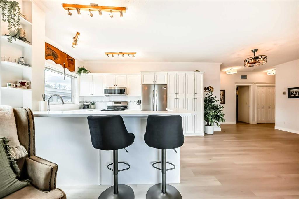 Your search stops now! Welcome home to this quiet, pet-friendly, 45+ building, where a spacious and turnkey 2 bed 2 bath unit in the highly desirable area of Olde Town Okotoks awaits you. Enjoy walking distance to many shops, cafes, restaurants and riverside pathways. Lovingly updated, this gem has over $40,000 in renovations in the last year including new LVP flooring, stainless steel appliances, new washer and dryer, kitchen countertops, a new kitchen sink and faucet, new bathroom vanities, new toilets, and all light fixtures. Behind the scenes you also have a new furnace heating system and hot water heater. Plenty of windows to let in the eastern morning sun and it stays nice and cool in the summer without the need for AC. Take advantage of the large ground-floor walkout patio with a lockable fenced deck, steps from your assigned covered parking space with plug-ins - easy access to the street and no waiting for the elevator! Ample street parking and seven private visitor parking spots are available. Fall in love with the charm of downtown Okotoks and indulge in the many events and festivities year round right outside your doorstep that make it a wonderful place to live.