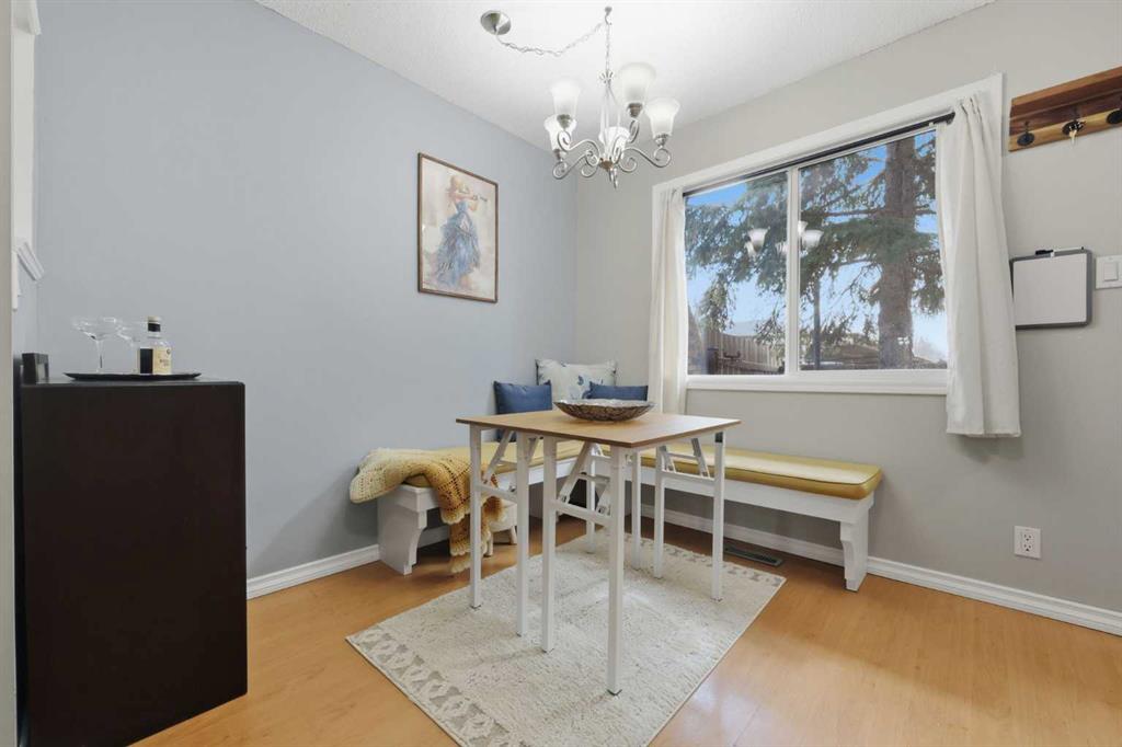 Affordable, sun-soaked, and full of character, this end-unit townhouse in the sought-after Prairie Meadows is a rare find. Priced to make the move from renting to owning finally feel within reach, this home checks every box without compromise. A private, gated yard sets it apart from every other unit in the complex, offering outdoor space that feels truly your own. The wood deck is made for summer evenings with friends, morning coffee, or simply soaking up the south-facing sun that pours through the windows and brightens every corner of the main floor throughout the day. Inside, the custom built-in bench in the dining nook is as functional as it is charming, the perfect spot to gather. The kitchen is practical and well-appointed with updated white shaker style cabinetry, generous counter space, and a new fridge (2023) and stove (2026). The living room is warm and anchored by a classic corner wood-burning fireplace, making cold Calgary winters something to look forward to. The half bath on the main floor completes this floor. Thoughtfully converted to a two-bedroom layout upstairs, both bedrooms are generously sized. The primary suite features a large walk-in closet. While the second bedroom offers flexible space - use it as a guest room, home office, or both. The full 5pc bathroom on this level delivers double sinks and excellent storage. The finished basement adds even more living space with a large recreation room and abundant storage throughout, a rare bonus at this price point. In-suite front-load laundry completes the lower level. Major mechanicals are already taken care of: furnace (2013), hot water tank (2019). This pet-friendly complex welcomes your four-legged family members, too. Move-in ready and waiting. Stop renting and start owning.