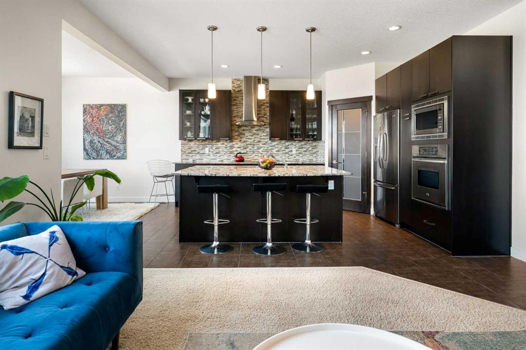 Designed with elegance and functionality, the home features 3 bedrooms, a loft, and 3 bathrooms, with 9’ ceilings on both the main floor and basement. The main level offers a formal dining room, a spacious great room with a sleek linear gas fireplace, and a bright eating area that seamlessly connects to the gourmet maple kitchen—complete with granite countertops, a large centre island, designer tile backsplash, and stainless steel appliances. A 2-piece powder room and convenient main floor laundry complete this level.