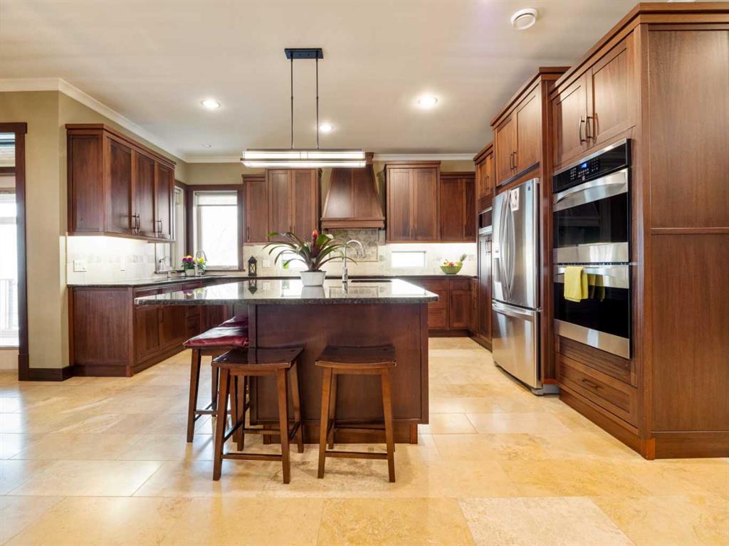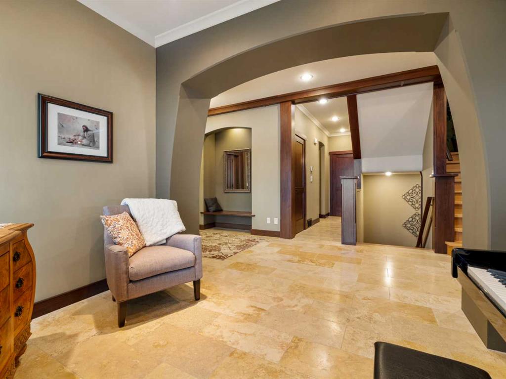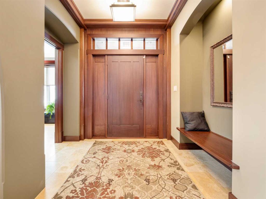 Inside, you’ll be welcomed by soaring ceilings, rich finishes, and timeless materials including Peruvian travertine tile floors and walls tiles , Rift & Quarter-sawn white oak hardwood flooring, and extraordinary Honduran mahogany cabinetry, woodwork, and doors.
