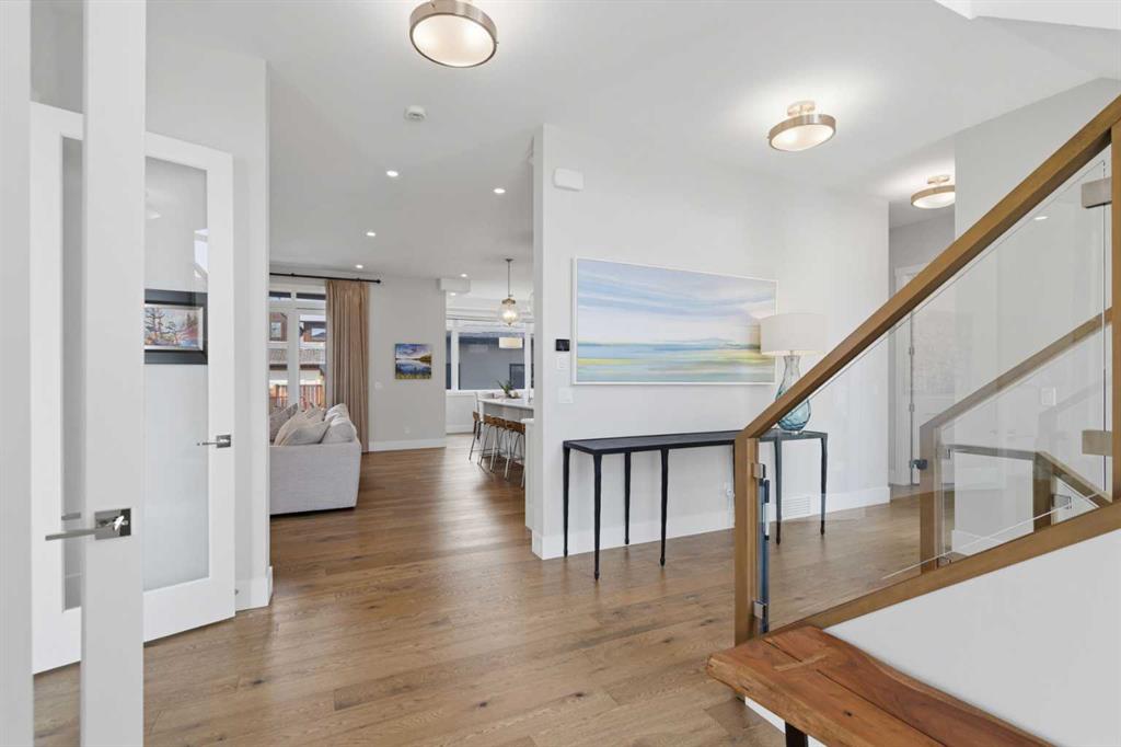 Stunning luxury home in Lakeview by Matrix (Burntwood Homes), perfectly positioned overlooking a peaceful greenspace and just steps from the Lakeview Community Association, hockey rink, parks, and Connect Charter School. This exceptional property showcases premium finishings and beautiful materials throughout, with extensive custom woodwork on every level including a walk-in pantry, mudroom lockers, and fully built-out closets. The main floor offers a bright, open concept layout ideal for entertaining, highlighted by a gourmet kitchen, featuring GE Monogram appliances, an oversized island, and custom cabinetry. The living room is anchored by a striking full-height tiled fireplace flanked by built-ins, while large windows, light wood floors, and modern neutral tones create a warm, airy feel. A private office and formal dining room, separated by 8\' French doors, complete the main level. Upstairs, three spacious bedrooms each feature their own ensuite and walk-in closet. The primary retreat is a true sanctuary with a freestanding soaker tub, oversized rain shower and dual walk-in closets with custom organizers. Double patio doors open to a private west-facing balcony overlooking the backyard. Convenient upper-floor laundry adds everyday ease. The fully finished basement extends the living space with a media room, recreation area, wet bar, fourth bedroom, and full bath, ideal for entertaining or relaxing. Additional upgrades including BRAND NEW 50-gallon Hot Water Tank in 2026, air conditioning, Hunter Douglas blinds throughout, a reverse osmosis water purification system, water softener, and a fully drywalled double detached garage for a clean, finished look. The beautifully landscaped west facing backyard offers a turnkey outdoor space with gas line for barbecue, electronic awning to escape the hot summer sun and a spacious deck to enjoy the evening sunsets. Located in one of Calgary’s most desirable communities, Lakeview offers excellent schools, parks, and amenities within walking distance, along with quick access to major routes and a short downtown commute. A truly exceptional home in a premier location.
