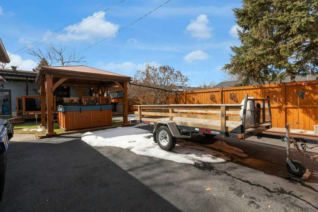 Out back… well, this is where things get extra special. Step through the kitchen’s French doors and into your own backyard escape. Picture summer evenings surrounded by blooming perennials and fragrant lilacs, unwinding on the massive deck with a drink from your live edge bar, soaking in the hot tub, or lounging under the pergola. It’s equal parts garden oasis and entertainer’s playground. The cedar fencing and railings add a timeless, natural charm, while the treated wood accents keep everything looking sharp for years to come. There’s even a cozy fire pit for late-night stories under the stars and a handy wood shed to keep everything stacked and ready. For the hobbyist (or anyone who loves a seriously great garage), the insulated and heated 27\' x 25\' garage is a total dream setup. With paved RV parking and a dedicated RV gate, there’s room for all your toys.