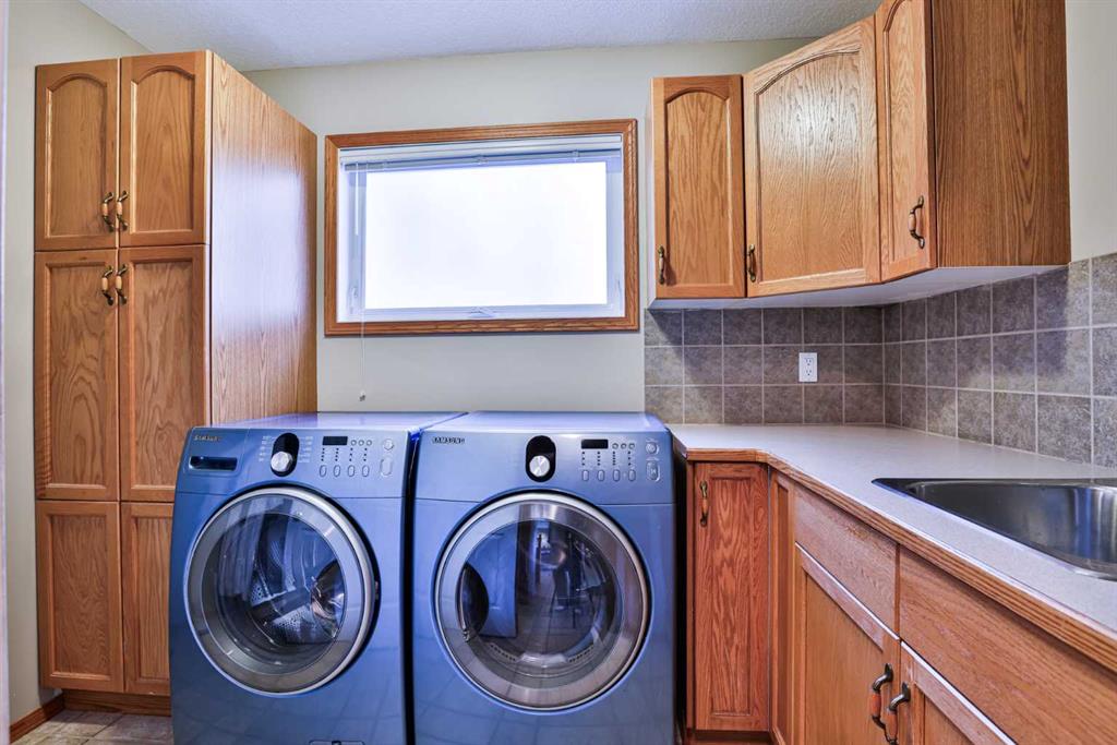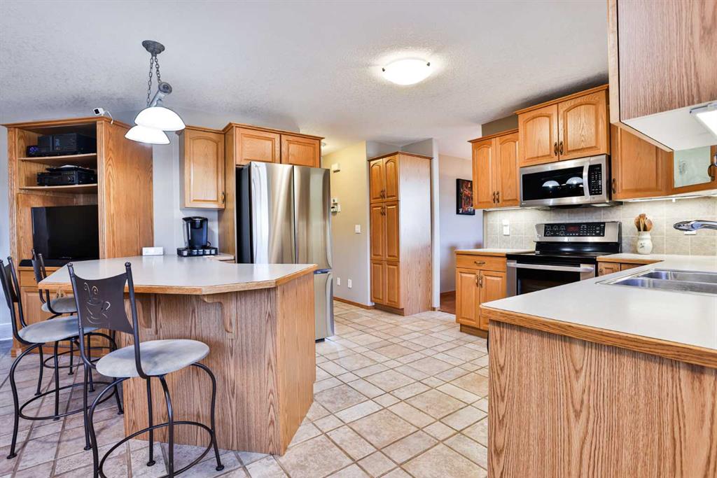 At the heart of the home is an expansive oak kitchen offering generous workspace and a large breakfast bar that flows seamlessly into the dining and living areas, allowing you to tailor the layout to your lifestyle. A formal sunken living room with a stone faced fireplace provides an elegant setting for entertaining, while the separate formal dining room is ideal for hosting special occasions. Main floor laundry and a two piece powder room add everyday convenience.