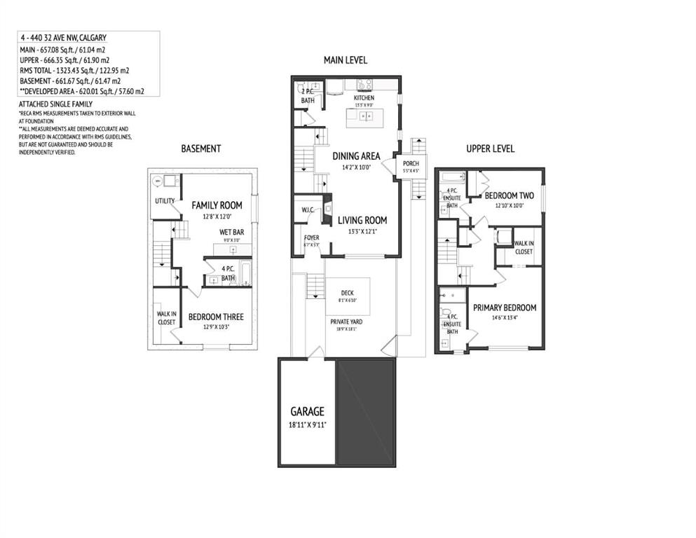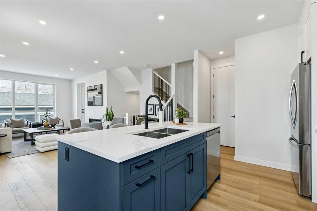 **Open House Sunday April 12 1-3 pm** Welcome to 4-440 32 Avenue NW, a newly built 3 bedroom, 3.5 bathroom townhome spanning nearly 2,000 sq. ft. of total developed living space, including a fully finished basement, with 9 foot ceilings throughout situated in the desirable community of Highland Park in Northwest Calgary. The property was constructed by MountainPoint Homes Ltd., a professional builder with decades of experience working on high-end residences across Calgary. The home showcases superior craftsmanship, premium materials, and a design focused on livability and enduring value. The open-concept main floor offers a bright and inviting living area anchored by a sleek fireplace, complemented by a custom-built kitchen with full-height cabinetry, quartz countertops, and a modern appliance package. Thoughtful design and high-quality finishes elevate each detail from the luxury vinyl plank flooring to the precision millwork and thoughtful lighting selections. Upstairs, the primary suite provides a private retreat with a custom walk-in closet and a spa-inspired ensuite bathroom with heated floors. A secondary bedroom with its own ensuite and convenient upper-floor laundry add everyday functionality. The fully developed lower level expands the living space with a large recreation area, wet bar, three-piece bathroom, and spacious guest bedroom perfect for hosting or family living. Built with energy efficient systems, complete with A/C rough-in and durable Hardie board siding, this property is built to provide homeowners with peace of mind while also coming with a comprehensive new home warranty package. Outside features its own private use fenced in backyard space connecting directly to your own private garage, complete with a gas line and patio, perfect for barbequing or enjoying summer evenings. Located in Highland Park, one of Calgary’s most central and rapidly revitalizing communities. Minutes from Confederation Park, residents will enjoy easy access to downtown, nearby schools, parks, and major amenities, as well as the welcoming charm of a mature neighborhood poised for long-term growth.