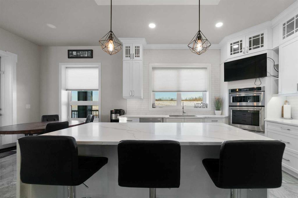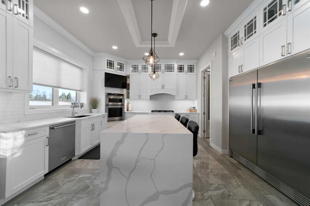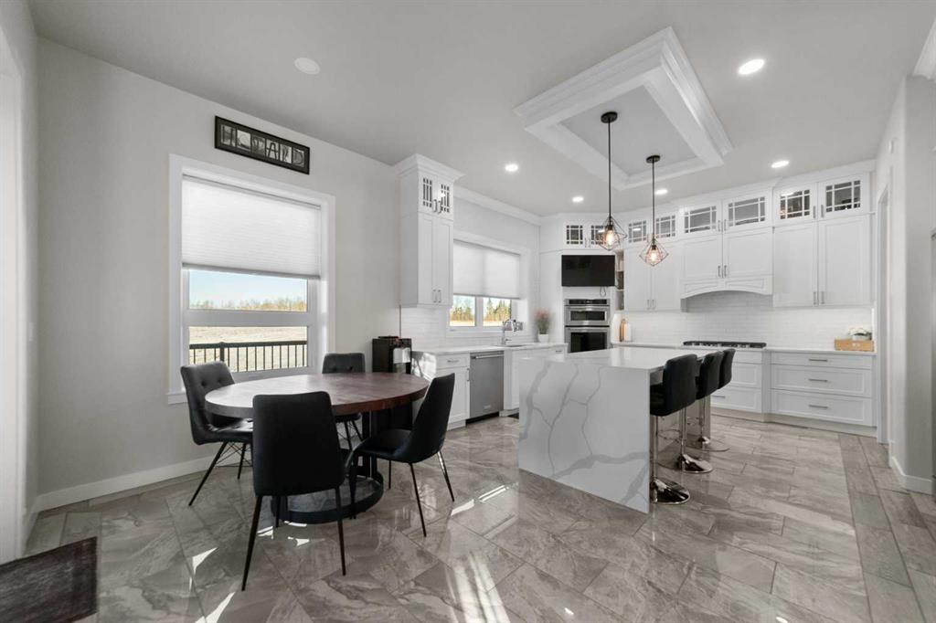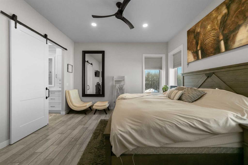 Tucked away in McNary Estates just 10 minutes from Camrose, this one-of-a-kind custom-built home offers the perfect blend of luxury, efficiency, and peaceful country living on 1.45 acres. Built with quality and longevity in mind, this property features an ICF foundation from basement to roof, durable Hardie board siding, and a 50-year Euroshield rubber roof. Inside, you’ll find an expansive open-concept layout with soaring 12’ ceilings, triple pane windows, and in-floor heating throughout the entire home and garage, powered by a new boiler (October 2025) and supported by an HRV system for year-round comfort. The chef-inspired kitchen is truly the heart of the home, complete with an industrial-sized fridge/freezer, gas cooktop, oven, and a massive walk-in pantry with a built-in coffee bar. The living room offers custom built-in storage and a warm, inviting atmosphere perfect for entertaining or relaxing with family. The main floor features a spacious primary retreat with a walk-in closet and a luxurious ensuite boasting dual shower heads. Two additional bedrooms (both with walk-in closets), a full 4-piece bathroom and convenient main floor laundry with built-in shelving complete this level. Downstairs, the fully developed basement offers exceptional versatility, including a large family room with wet bar, a bedroom with walk-in closet and a home gym (also with walk-in closet). The basement also features a full second kitchen. Step outside and enjoy the privacy of country living with a maintenance-free deck, outdoor fireplace, hot tub and play set. The property is serviced by a great well and septic mound system. This thoughtfully designed, energy-efficient home checks all the boxes and offers a rare opportunity to own a truly unique property in a desirable location.