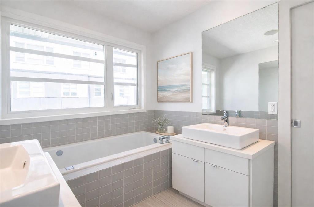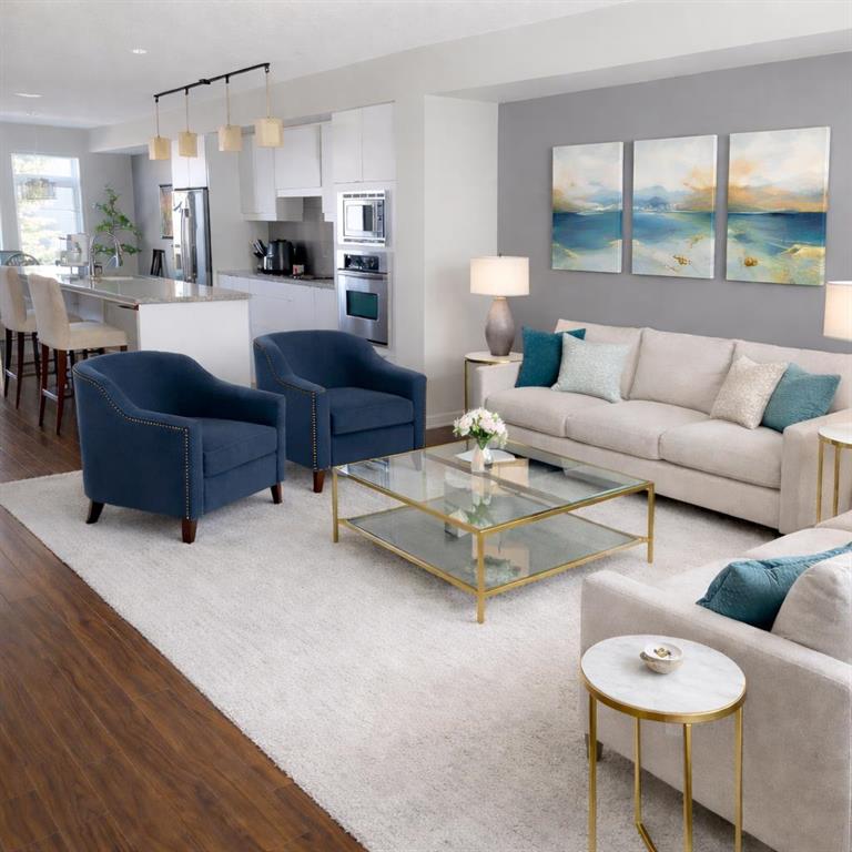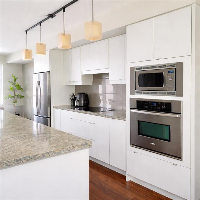 Experience comfort, style and low-maintenance living in this executive end-unit townhouse. The bright, open-concept main floor features a modern kitchen with a large oversized island, granite countertops, built-in oven and stovetop and pantry. Open concept kitchen, dining room and living room creating a welcoming and functional space. A cozy electric fireplace adds warmth and character, plus a convenient 2-piece bathroom completes the main level. Upstairs you will find three spacious bedrooms, including a primary suite with a walk-in closet and ensuite featuring dual sinks, a soaker tub and a separate shower. A full 4-piece bathroom serves the additional bedrooms. The partially finished basement provides extra living space with a family room and a versatile rec area, ideal for relaxing, working out or hobbies. Outside - enjoy a fenced yard, heated double detached garage and the convenience of a paved back alley for easy access. Residents of this well-maintained complex enjoy outstanding amenities, including a fully equipped gym, landscaped courtyard, theatre room, commercial kitchen for hosting events, underground car wash, and secure bicycle storage. Pet-friendly with board approval; 2 cats or 1 small dog (14\" high at shoulder). Amazing location close to parks, schools, shopping, dining, and recreation, offering an ideal blend of lifestyle and convenience. This property is truly a one of a kind! Photos have been virtually staged to showcase the property\'s potential.