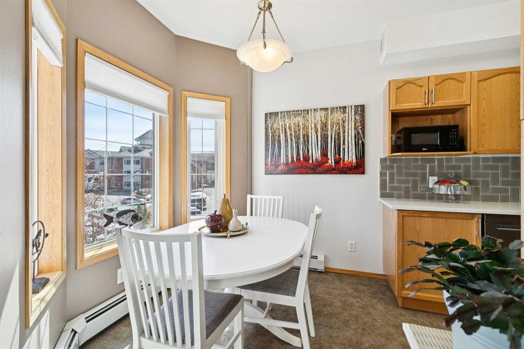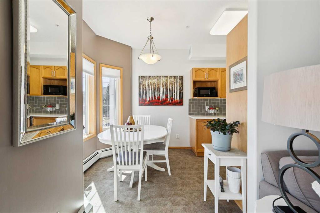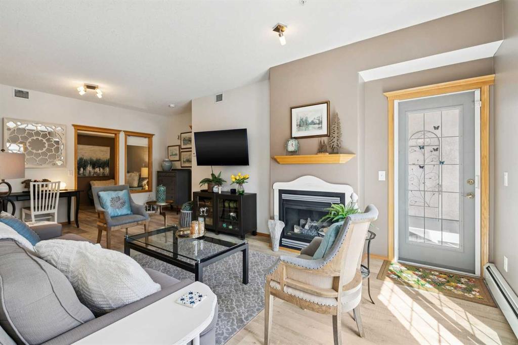 Welcome to this beautifully maintained 2 bedroom plus condo in the highly sought-after 40+ adult-living community of Sierras of Tuscany. Offering a perfect blend of comfort, space, and lifestyle. The spacious living area is warm and inviting, featuring a cozy gas fireplace—perfect for relaxing evenings. The classic kitchen is both functional and timeless, complete with quartz countertops and ample cabinetry, flowing seamlessly into a bright eating area filled with natural light. The large primary bedroom offers a peaceful retreat with a walk-in closet and private ensuite while a separate bedroom/den provides the perfect space for a home office or guest area. An additional 3-piece bathroom adds convenience for visitors. What truly sets this property apart is the exceptional range of amenities available within the complex. Residents enjoy access to an impressive indoor saltwater pool, hot tub, fitness facilities, bowling alley, movie theatre, ballroom, games room with pool tables, workshop, car wash, and more. Creative spaces like the arts & crafts room and community kitchen foster connection, while the library and quiet reading areas showcase stunning panoramic views of the Rocky Mountains. For visiting family and friends, well-appointed guest suites are also available. A rare opportunity to enjoy resort-style living in a vibrant and welcoming community.