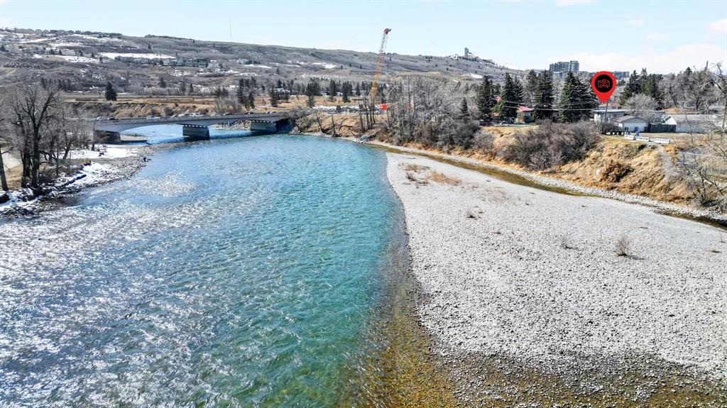 Welcome to a very, very rare property!! This amazing property\'s rare feature is that it backs toward the Bow River and is located on a very private cul-de-sac! The other major factor of this once-in-a-lifetime property is the massive pie-shaped lot. The brick-faced semi-detached house, with a total of four bedrooms and two full bathrooms, sits on a 150-ft deep huge pie-shaped fenced lot! Special features contributing to the outstanding value of this property include: the upstairs has real hardwood flooring, a brick-faced real wood-burning feature wall in the living room, two patio doors to a massive front balcony, the lower area has a two-bedroom illegal suite c/w large bilevel windows, an updated f/a furnace, and an updated membrane roof. There are two bedrooms upstairs and the primary bedroom has patio doors to another private rear balcony! Here\'s the next bonus: it also features a full double car garage!! The property is listed well below the current assessed value of $559,500. This is a fantastic owner occupied home or revenue property! Walk right behind the house all along the Bow river escarpment. Shouldice Park and off-leash park are directly across the river. The Children\'s and Foothills hospitals and UofC are only 5 minutes away. This property is only 15 minutes to downtown and offers easy access west to the mountains! Hurry on this one!!!