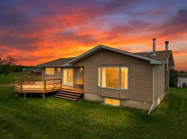 Come take a look at this very private, peaceful acreage that is perfect for country living. If you are needing an acreage with a second home for a guest house or extended family living or even for some rental revenue this may work for you. The main home is an updated Bungalow with 3 bedrooms, a bath and a half, main floor laundry, nice wide open kitchen and dining room that works its way over to a nice cozy living room. Downstairs is wide open and ready for your future development. Recent upgrades are a wraparound deck, and new triple pane windows, new toilets and sinks recently installed. Also newer hot water tank, and recently inspected HE furnace, woodstove, water filtration and RO system. Guest house is just under 800 sq ft with a large bedroom a 4 piece bathroom, laundry room, kitchen, living room and foyer and storage areas. Upgrades in this home include kitchen cabinets and some plumbing and electrical and blown in insulation in the attic. Included are a 30\' x 40\' shop at the main house, along with a 30\' x 46\' cold storage shop at the Guest house yard. A 24\' x 36\' barn building with pens for animals, a 15\' x 29\' lean-to, 2 garden sheds, 2 chicken coops, an 8\' x 20\' storage C-can, greenhouse, fruit trees, and access to water for animals. Also we have a 24\' x 24\' cabin that comes with a built-in smoker, barrel stove, built-in bar and furniture for picnics, bbq\'s, and entertaining. We are Zoned AG so bring your horses and cattle. The closeness to Red Deer, the gorgeous view over the water, the privacy and all the extras make this a perfect piece of paradise.