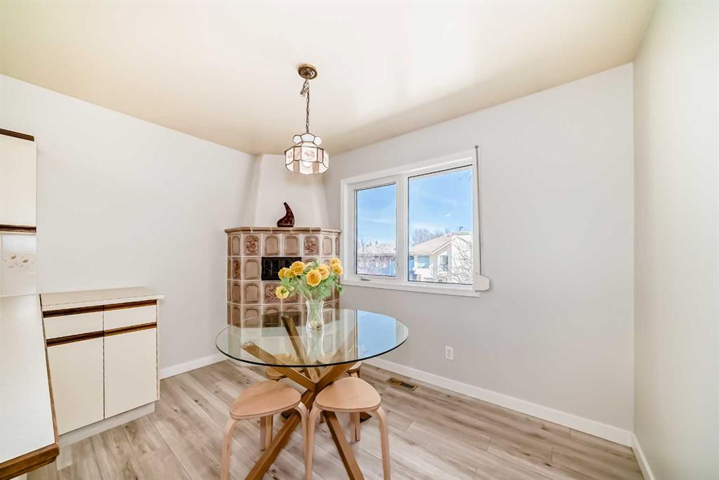 Open House on Saturday Apr 18th and Sunday Apr 19th from 2PM-4PM. This well-maintained bungalow is ideally situated on a peaceful cul-de-sac. Step inside to an expansive living room, where oversized windows fill the space with natural light and create a bright, welcoming feel. The bright kitchen offers ample cabinet space and storage, flowing seamlessly into the dining area. Tucked into the corner of the space, a cozy wood-burning fireplace creates a comfortable setting for both everyday living and entertaining. The main floor features a well-designed and functional layout, including a spacious primary bedroom with a private 3-piece ensuite, two additional bedrooms, a full 4-piece bathroom, and the convenience of main floor laundry. East-facing windows are complemented by exterior sunshades, creating a refined balance of privacy and comfort while gently filtering the morning sun.