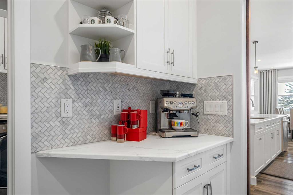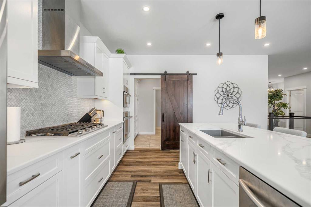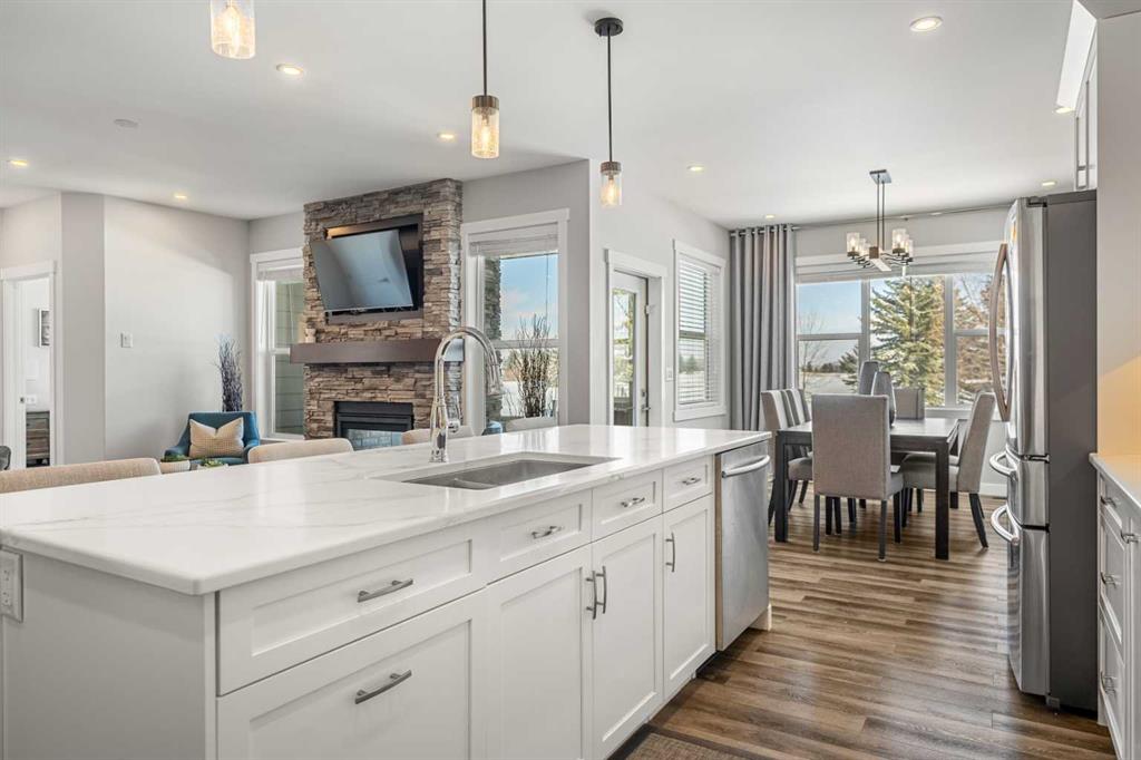 Step inside to a bright and open main floor where large windows frame stunning views and flood the space with natural light. The living room is anchored by a striking floor-to-ceiling stone fireplace, creating a warm and inviting focal point that can also be enjoyed from the outdoor deck space. The chef-inspired kitchen is equally impressive, featuring quartz countertops, premium stainless steel appliances, a gas cooktop, built-in wall ovens, a spacious island with seating, and a convenient servery/pantry area — ideal for both entertaining and everyday living. The dining area seamlessly connects the space and offers easy access to the outdoor living area, where you can relax and enjoy peaceful golf course views from your covered deck. This home also offers an underground irrigation system that has been well maintained through the life of it\'s ownership! One less thing to worry about when maintaining your backyard sanctuary.