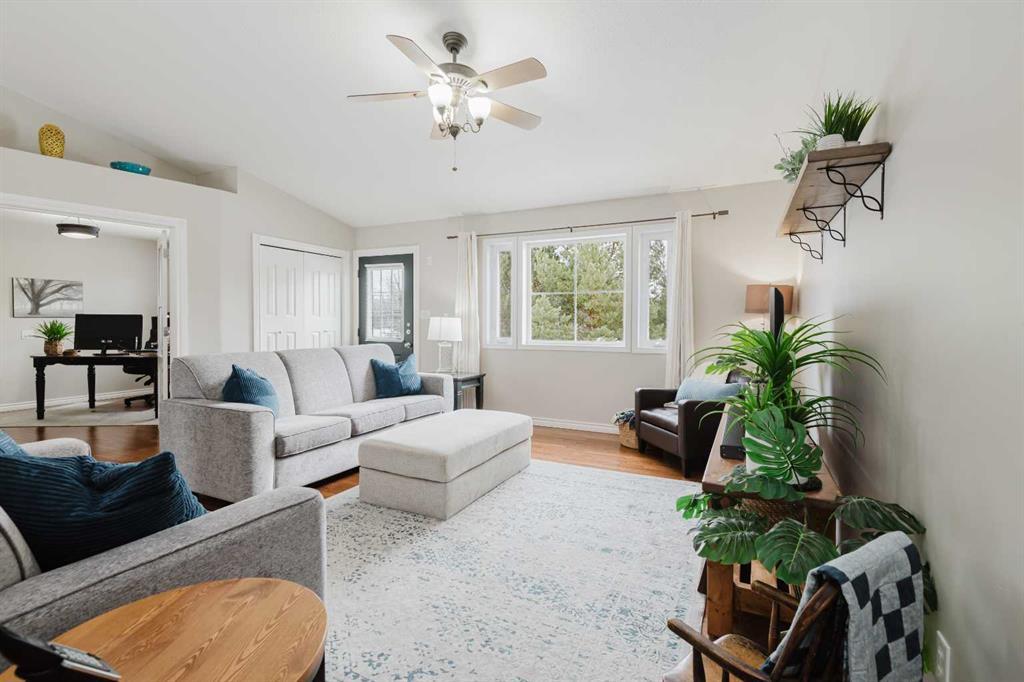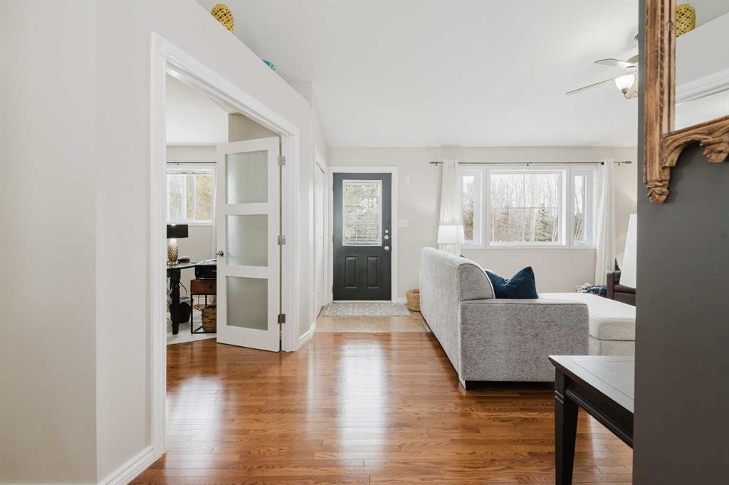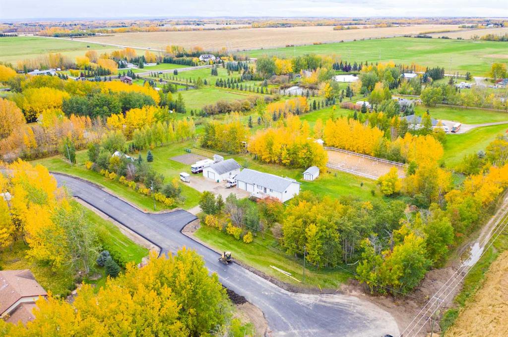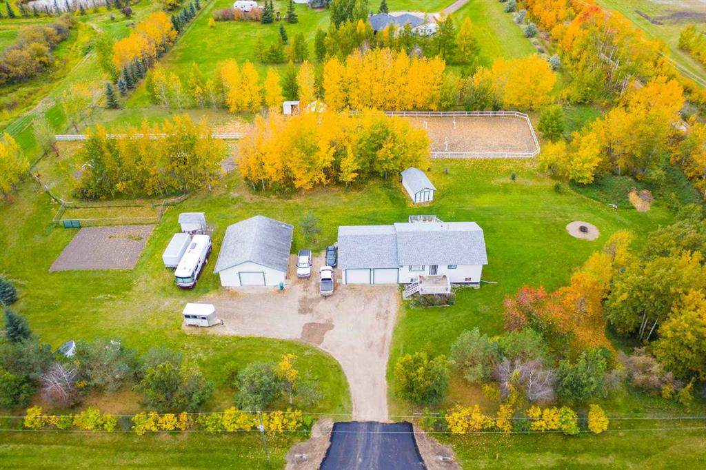 Welcome to this stunning 3-acre property in sought-after Dunkley Meadows, perfectly set up for horse lovers and anyone craving peaceful country living just minutes from the city. Located only 2 minutes from Grande Prairie with pavement the entire drive, this private acreage is tucked at the end of a dead-end road and surrounded by mature trees, creating a beautiful sense of privacy and seclusion. The property is exceptionally well equipped with a 70x150 outdoor riding area, 2 horse shelters, tie rack, hay feeder, fenced pasture, 3 large sheds, and a detached 32x36 heated shop. There is also a large fire pit area, generous garden plot, and both front and rear decks so you can enjoy the sun all day long. The attached 30x32 heated garage with 13’ ceilings offers incredible function and storage. Inside, the bright and sunny home is fully developed and offers 5 bedrooms plus an office. The main floor features a spacious living room, a beautifully functional kitchen with tons of cabinet storage and access to the rear deck with gorgeous country views, a main bathroom, one bedroom, an office, and a generous primary suite with double closets and a 4-piece ensuite featuring dual sinks, and nice glass and tile shower. The fully developed basement adds 3 more bedrooms, another bathroom, a large family room, and a laundry room with sink. Zoned CR-2 and meticulously maintained, this property has seen many updates over the years and clearly shows pride of ownership throughout. A rare opportunity to own a beautifully cared-for acreage in an unbeatable location.