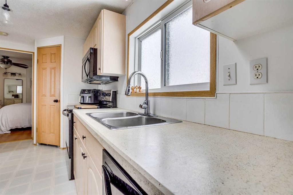 This well-maintained, freshly painted 3-bedroom, 2-bathroom mobile home offers 1,226 sq ft of comfortable living space in the desirable and established neighbourhood of Gregoire. Situated on a generous 4,447 sq ft fully fenced corner lot—one of the larger lots in Gregoire Park—this property combines affordability with thoughtful updates and modern appeal. With no neighbours on three sides, you’ll enjoy added privacy and a more open feel. The mobile is securely anchored on all four corners, providing added stability and peace of mind.