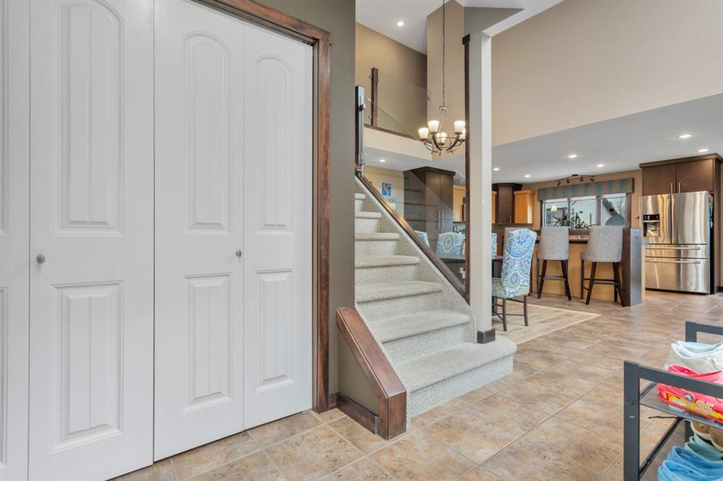 Welcome to this beautifully designed, fully finished two-storey home with an attached double garage. Thoughtfully located within walking distance to The Abbey Centre, walking paths, the library as well as both middle and high schools. Step into a bright and airy main floor where soaring vaulted ceilings and windows all around, create an inviting, open home flooded with natural light.