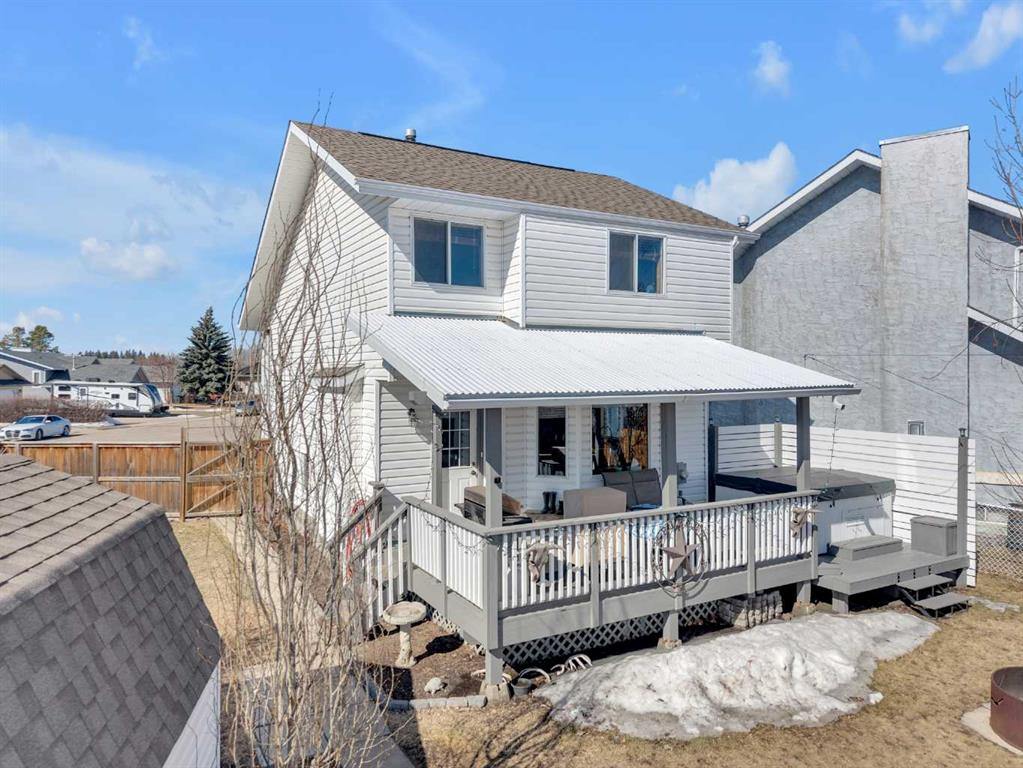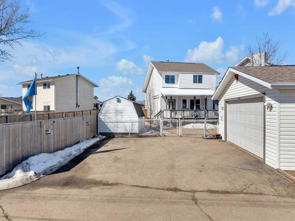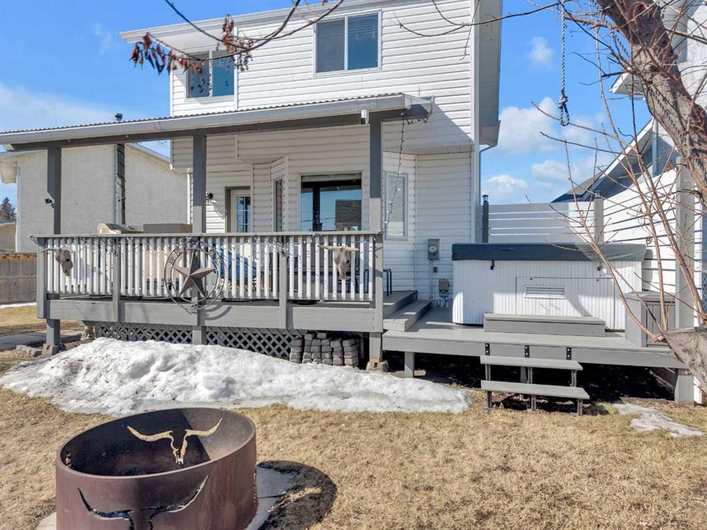 A Family home opportunity on a quiet cul-de-sac with an incredible outdoor setup and very quiet backyard! This property features an oversized 24’x26’ detached garage with 220 power, plus plenty of off-street parking—perfect for vehicles, toys, or a workshop. Enjoy your own backyard retreat with a covered deck and private hot tub, and a HUGE yard with tons of space for the family, friends, swimming pool, trampolines and outdoor entertaining space! Inside, the well-maintained 2 story offers a functional layout with an eat-in kitchen, bright living room, and convenient main floor laundry and half bath. Upstairs you’ll find 3 generous bedrooms and full bathroom, while the fully developed basement includes a family room, large additional bedroom, and another full bathroom with lots of storage space in the combination storage/utility area.