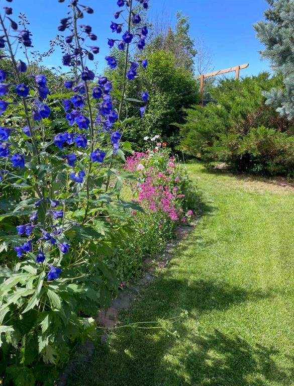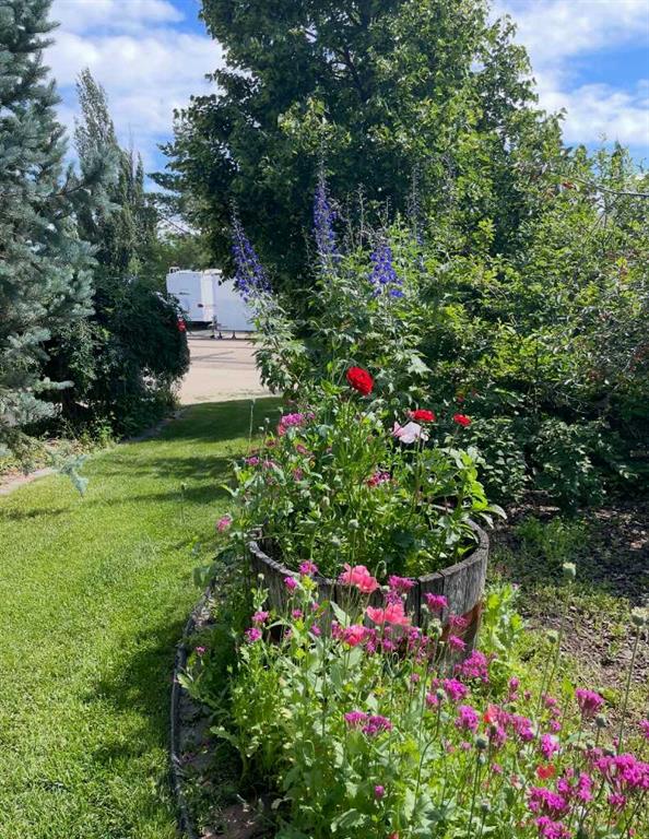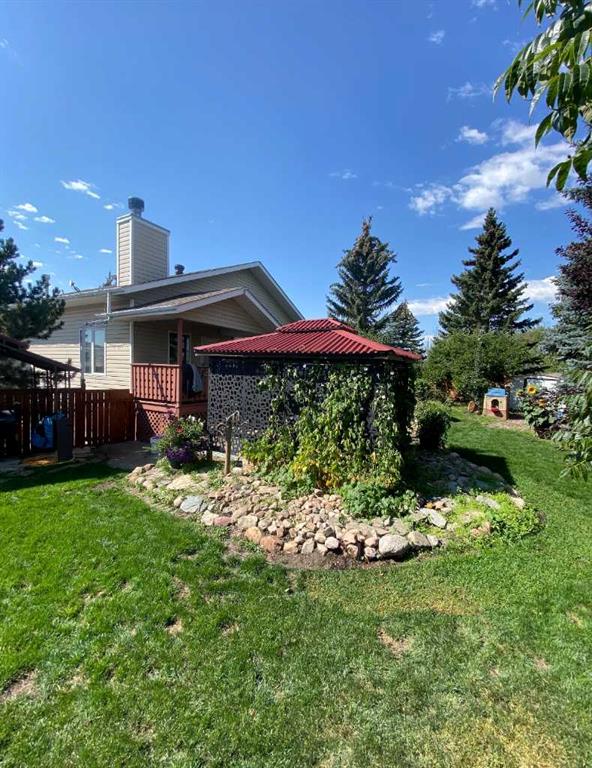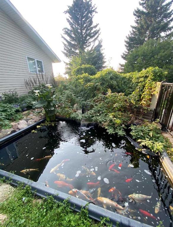Country living meets small-town convenience! This beautifully updated bungalow offers true main-floor living with a bright, open-concept layout and modern finishes throughout. Recent upgrades include kitchen appliances (2019), washer/dryer (2021), A/C (2022), furnace (2024), and roof (2019) — move-in ready with peace of mind. The main level features 2 bedrooms, including a spacious primary with a large ensuite, plus an additional bedroom/office and full bath. The fully finished basement adds 2 more bedrooms, a full bathroom, wet bar, cozy wood-burning fireplace, and in-floor heating — perfect for family or guests……Outside is where this beautiful home really SHINES….Enjoy the Oversized heated double attached garage; MASSIVE amounts of off-street parking (where else have you seen a highway trailer parked?!!!) and beautiful fully landscaped yard like no other! You can relax by the pond, entertain on the deck and patio with gazebo, or enjoy the firepit area. There are a couple of sheds, and tons of perennials, trees and shrubs (Zone 5 Underground sprinkler system). This amazing yard has room for the fish, the kids, the dogs and even a chicken coop/run!! Located on the edge of town with pasture beside, for that country feeling. This property includes access to an additional leased municipal space currently used as a garden - so EVEN MORE ROOM to enjoy! Fully fenced and ideal for those seeking space, privacy, and a modern, comfortable home.