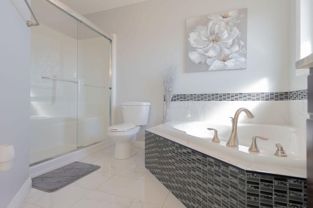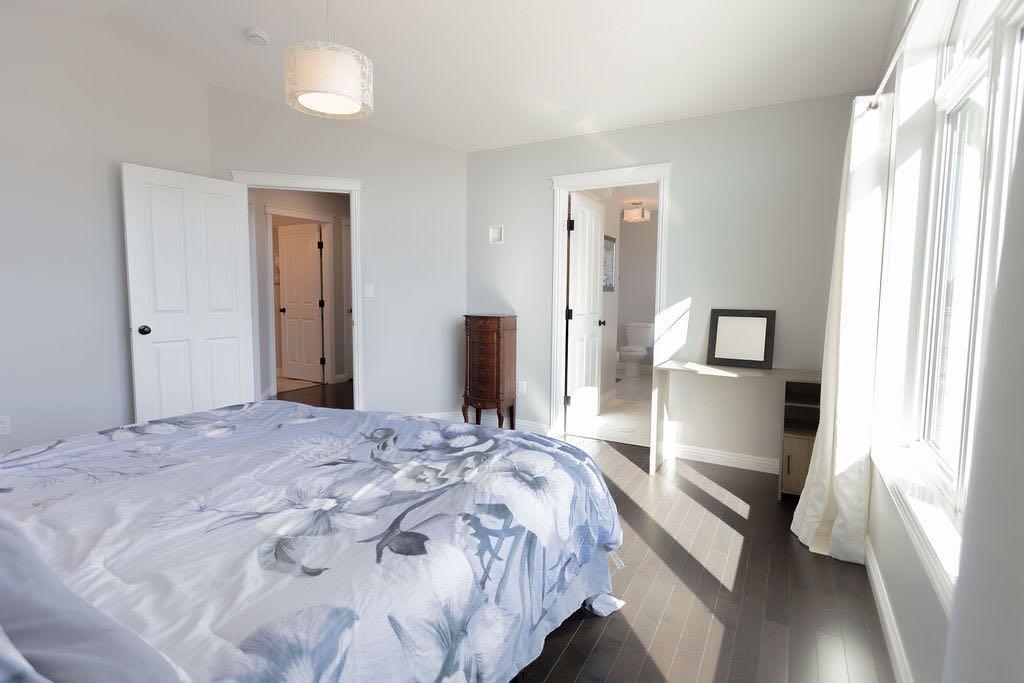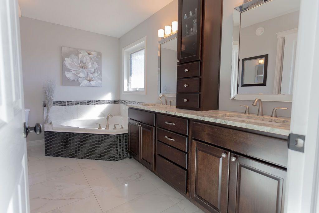 The spacious primary suite is a true retreat, boasting a luxurious 5-piece ensuite with dual sinks, a corner soaker tub, separate shower, and a walk-in closet. Two additional bedrooms and a full 4-piece bathroom complete the main level.