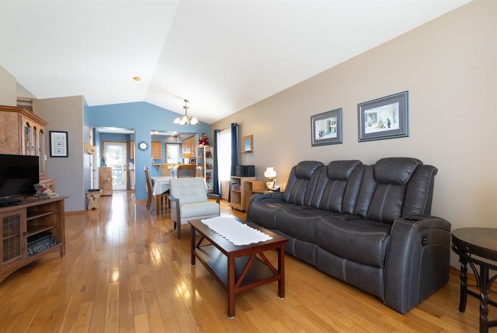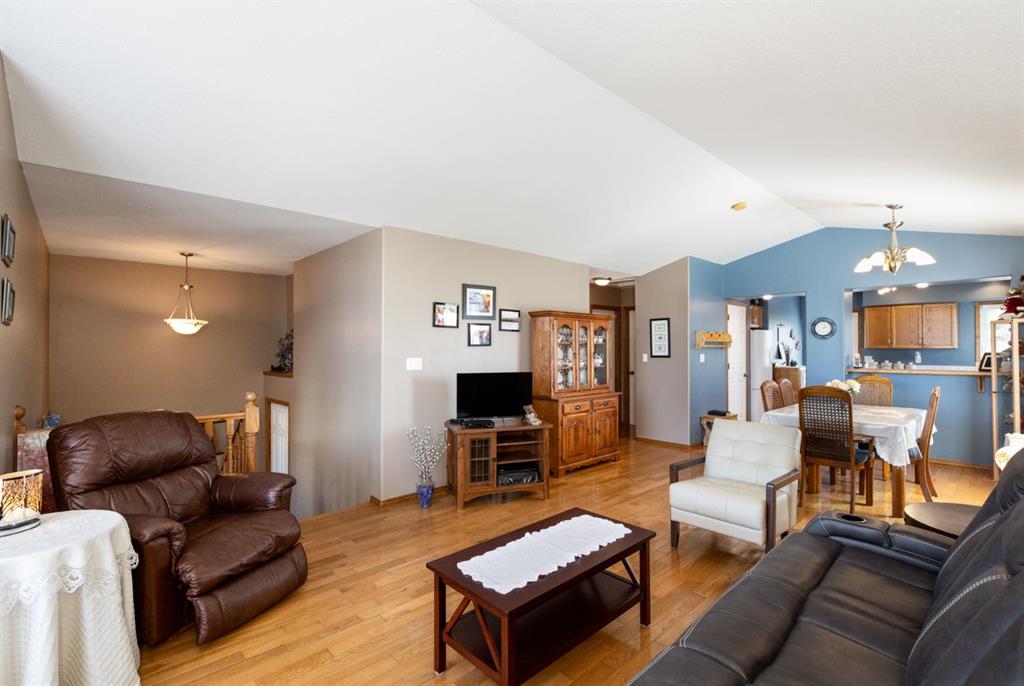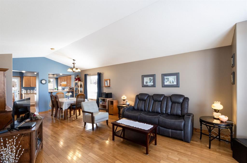 The dining and living areas flow seamlessly together, creating a warm and comfortable space for entertaining or everyday living. The primary bedroom offers plenty of room for a larger bed and additional furniture, while a second main-floor bedroom and a well-appointed 4-piece bathroom complete this level.