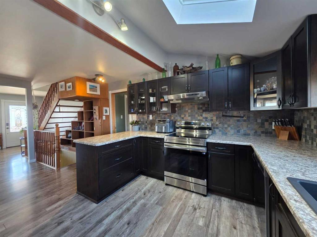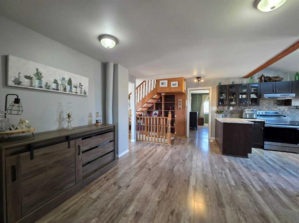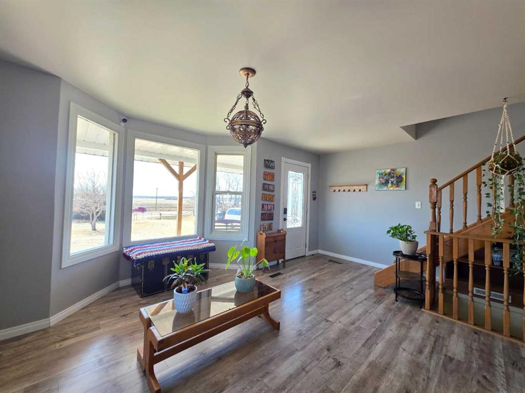 Welcome to your private slice of country paradise—where peaceful living meets everyday convenience just minutes from town and Base! Nestled on 6.62 acres of serene, picturesque land, this charming 3-bedroom, 1-bath acreage offers the lifestyle so many dream of. Located only 2 minutes from Wainwright and 5 minutes to Base, you’ll enjoy the perfect balance of quiet rural living without sacrificing accessibility. Take in breathtaking views of Bushy Head Lake surrounded by rolling fields of canola and open pasture—your backdrop for unforgettable sunsets and star-filled skies. And yes… you’ll have front-row seats to the Northern Lights right from your own deck. Step inside the character-filled home, originally built in 1940 and thoughtfully updated over the years. The beautifully remodeled 3-piece bathroom features a stunning oversized glass and tile shower, paired with a modern quartz vanity—and a skylight that fills the space with warm, natural light for a spa-like feel. The updated kitchen boasts rich espresso cabinetry, stainless steel appliances, granite sink, laminate countertops, a skylight overhead, and a window view you’ll never get tired of. The spacious primary bedroom on the main floor is flooded with natural light from large windows and offers an impressive walk-in closet with his-and-hers access—perfect for keeping everything organized. Upstairs, you’ll find two additional bright bedrooms, ideal for kids, guests, or a home office setup. Recent upgrades—including vinyl windows, a newer well, water softener, and pressure tank, roof shingles (2017)—add peace of mind and everyday comfort. Outside is where this property truly shines. The expansive wood deck is made for summer BBQs, entertaining friends, or simply soaking in the quiet beauty of your surroundings. The 32\' x 24\' metal garage offers ample room for vehicles, tools, and all your recreational gear. The land itself is a dream for those craving space and connection to nature—featuring a well-established garden, a charming wooden double swing, fencing around the entire perimeter, and mowed walking paths that invite you to explore and enjoy every inch of your private retreat. Whether you\'re dreaming of quad rides at sunset, snowmobiling in the winter, or raising a family with room to roam, this property delivers it all. Adventure starts right in your own backyard. If you’ve been searching for space, privacy, and a lifestyle upgrade—this is the one! Book your showing today.