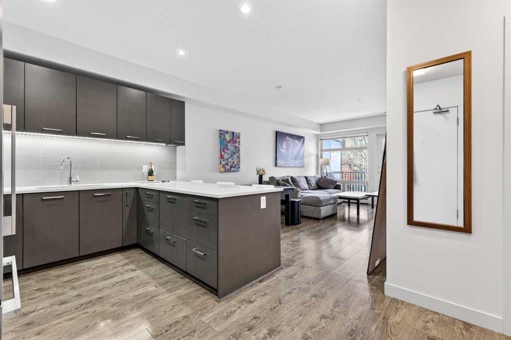 **TRIBECA - IN THE HEART OF MISSION l 1 BED - 1 BATH l AMAZING FLOOR-PLAN l COVERED BALCONY l TITLED UNDERGROUND PARKING l IN SUITE LAUNDRY l INNER-CITY LIVING AT ITS FINEST l THE ONLY UNIT AVAILABLE IN THE BUILDING l ***ATTENTION PROFESSIONALS, FIRST-TIME BUYERS, INVESTORS, DOWNSIZERS & DISCERNING BUYERS*** A Rare Opportunity to Own in One of Calgary’s Most Vibrant, Walkable and Sought-After Inner-City Communities — MISSION. The Tribeca by Bucci Developments represents the gold standard in inner-city condominium living — proudly certified Built Green Canada Platinum — a testament to quality, sustainability and thoughtful design. Upon entry, the open-concept layout immediately impresses. The spacious kitchen features modern soft close cabinetry, stunning quartz countertops, a breakfast bar, and top-of-the-line stainless steel appliances — flowing effortlessly into the living area which is filled with natural light. A garden door extends your living space outward to a lovely covered 76 sq ft balcony complete with a gas BBQ line and pleasant city views. The spacious primary bedroom offers a thoughtfully designed pocket door leading to an elegantly appointed four-piece bath, complete with a large quartz vanity, glass-enclosed shower, and deep soaker tub.