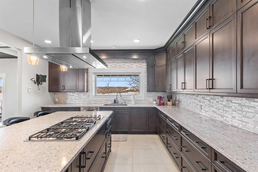 Welcome to lake life this unique and beautifully crafted custom two-story home perfectly positioned at Sandy Beach. Designed with both luxury and versatility in mind, this property offers four bedrooms, three bathrooms, and a fully developed walkout basement that includes a private two-bedroom, one-bath suite ideal for extended family, guests, or a short-term rental opportunity with complete privacy. Built with energy-efficient ICF construction from top to bottom, this home was designed for durability, efficiency, and long-term comfort. In-floor heating runs throughout the home and extends into the expansive 27’ x 42’ heated garage, creating warmth and functionality all year. This home features a built in safe and it is one of a kind. The gourmet kitchen is a standout feature, complete with double wall ovens, a gas cooktop, and a walk-through pantry that connects seamlessly to the mudroom for everyday convenience. The spacious dining area opens to a large west facing deck with breath taking lake views. The deck has two covered sections, offering the perfect setting to relax, entertain, and take in the incredible lake views. Upstairs, a bright bonus room captures stunning views of the water with vaulted ceilings and open exposed wood beams for added character. The primary master suite offers a peaceful retreat with a spa inspired five-piece ensuite. Two additional bedrooms share a Jack and Jill bathroom, creating a thoughtful layout for family living. The lower level expands the living space even further with a home theatre area, a cozy den, a gym area and additional storage built beneath the garage. The separate basement suite features its own private entrance, providing flexibility for guests or additional income. This thoughtfully designed, beautifully finished, and perfectly positioned to enjoy everything Sandy Beach has to offer and is the epitome of lake life blended with luxury. This well curated unique custom home awaits you!
