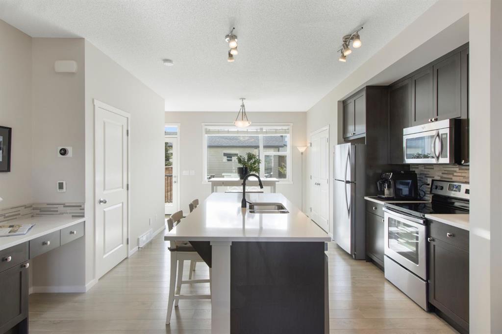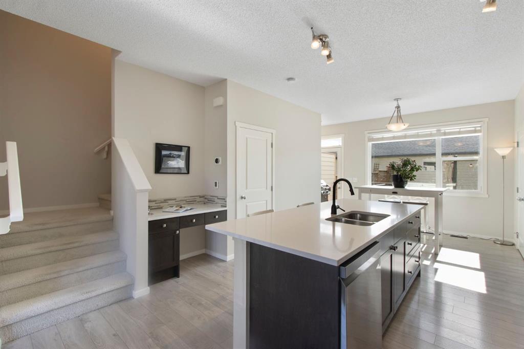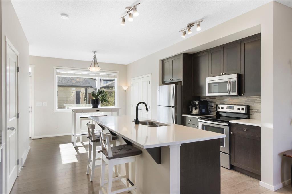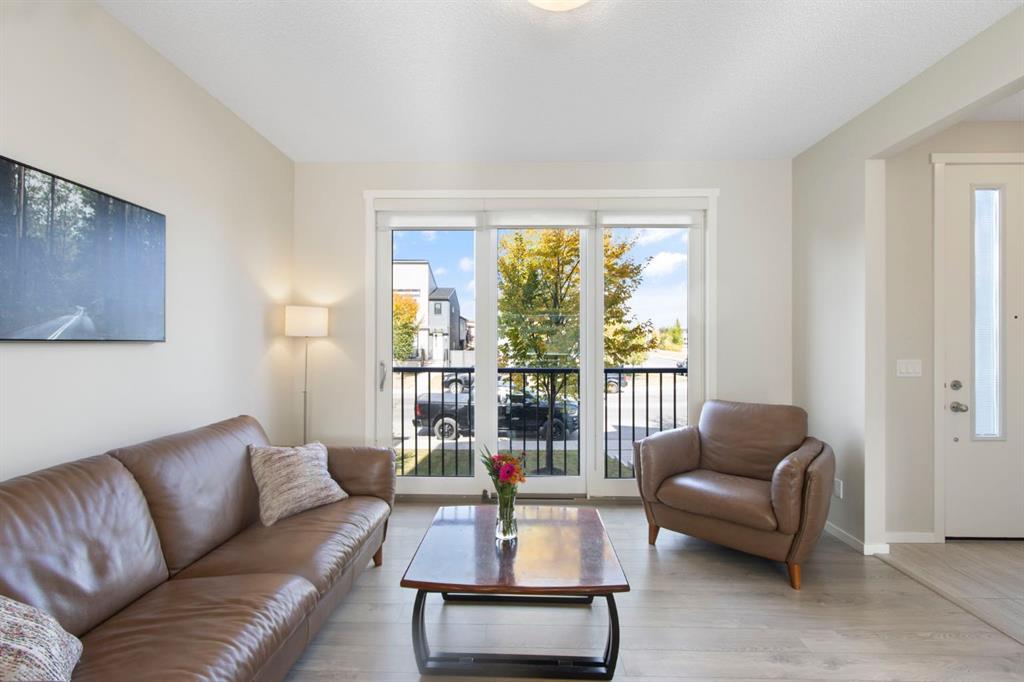 Located kitty corner to a large field, this four-bedroom, four-bathroom, fully developed home in Walden showcases pride of ownership throughout. Entering the home you\'re welcomed with a large floor to ceiling window flooding the living room with natural light. The living room seamlessly opens into the centre-positioned kitchen, which features quartz countertops, ceiling height cabinets, stainless steel appliances and ample storage. The dining room has another generous SOUTH facing window that overlooks your large backyard. The main floor is complete with a 2 piece bathroom and back entry. Heading upstairs your primary retreat allows room for a king size bed, has a walk in closet and 3 piece en suite. There are an additional two bedrooms upstairs that share a 4 piece bathroom. Heading into your developed basement, you\'ll find an additional recreation space/family room, your fourth bedroom, a 3 piece bathroom, a laundry room, and a storage/utility room. Heading outside you have a huge backyard with south exposure for maximum sunlight accompanied by a deck for all your patio furniture. This home is upgraded throughout with kitchen cabinets to the ceiling, a floor-to-ceiling front bay window, and air conditioning; it is in like new condition. This home is conveniently positioned across from a large field, just 2 turns away from the Legacy shopping centre and allows quick access to Macleod Trail.
