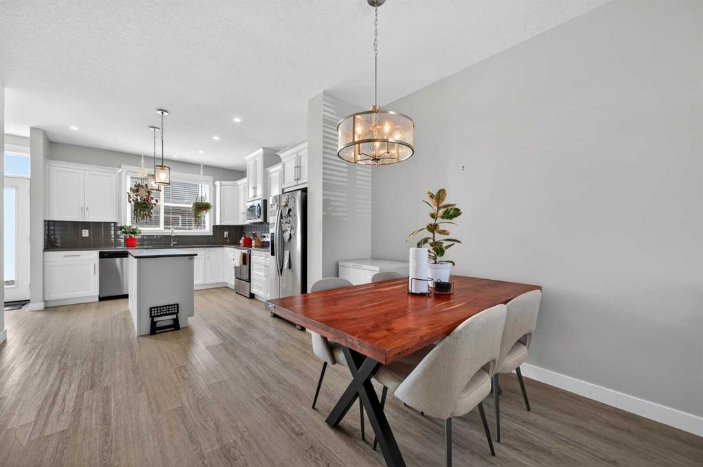 Welcome to this beautifully maintained NO CONDO FEE, CORNER UNIT home offering the perfect blend of functionality, style, and location. Situated on a desirable south-facing lot, this home is bathed in natural light, creating a warm and inviting atmosphere. When you walk in, you’ll notice the thoughtfully designed open-concept main floor. It is ideal for both everyday living and entertaining, featuring a stunning kitchen complete with upgraded cabinetry, quartz countertops, and stainless steel appliances. The home continues to impress with custom built-ins including a bench in the rear mudroom, and a versatile built-in nook - perfect as a home office. A convenient 2-piece powder room completes this level. Upstairs, you’ll find TWO SPACIOUS PRIMARY BEDROOMS, each with its own large walk-in closet and private 4-piece ensuite, separated by the convenience of upper floor laundry. The basement is ready for your future development with an egress window and bathroom rough-in. Enjoy the sunny SOUTH-FACING FENCED BACKYARD, perfect for gardening or relaxing, along with a BBQ gas line for easy outdoor entertaining. The double detached garage offers ample space for vehicles and storage, with paved alley access for added ease. Additional upgrades include CENTRAL AIR CONDITIONING and a recently installed WATER SOFTENER, adding comfort and long-term value. Location is unbeatable. Just steps from Sky Pointe Landing plaza, a major retail hub offering dining, shopping, fitness, medical services, and everyday essentials. Families will appreciate being within walking distance to both Prairie Sky School (Public K-9) and Apostles of Jesus School (Catholic K-9), with Nelson Mandela High School just a short drive away. Commuting is effortless with a bus stop only a 1-minute walk from your door, making this a highly transit-friendly location. Whether you\'re a first-time buyer, downsizer, or investor, this is a rare opportunity to own an exceptional property in one of Calgary’s fastest-growing communities. Book your showing today!
