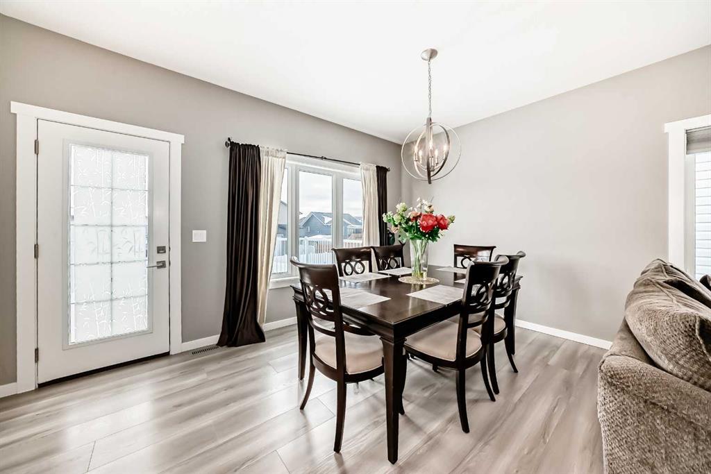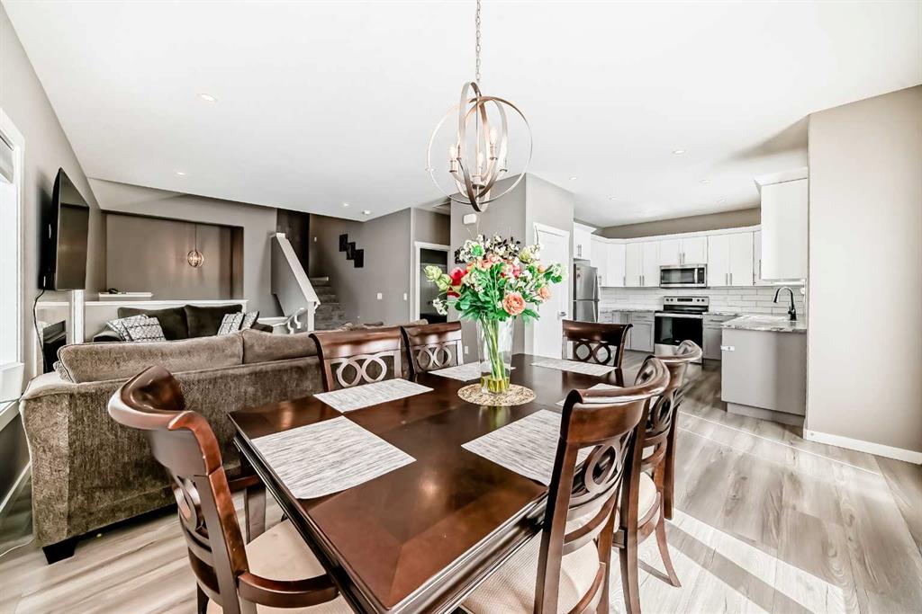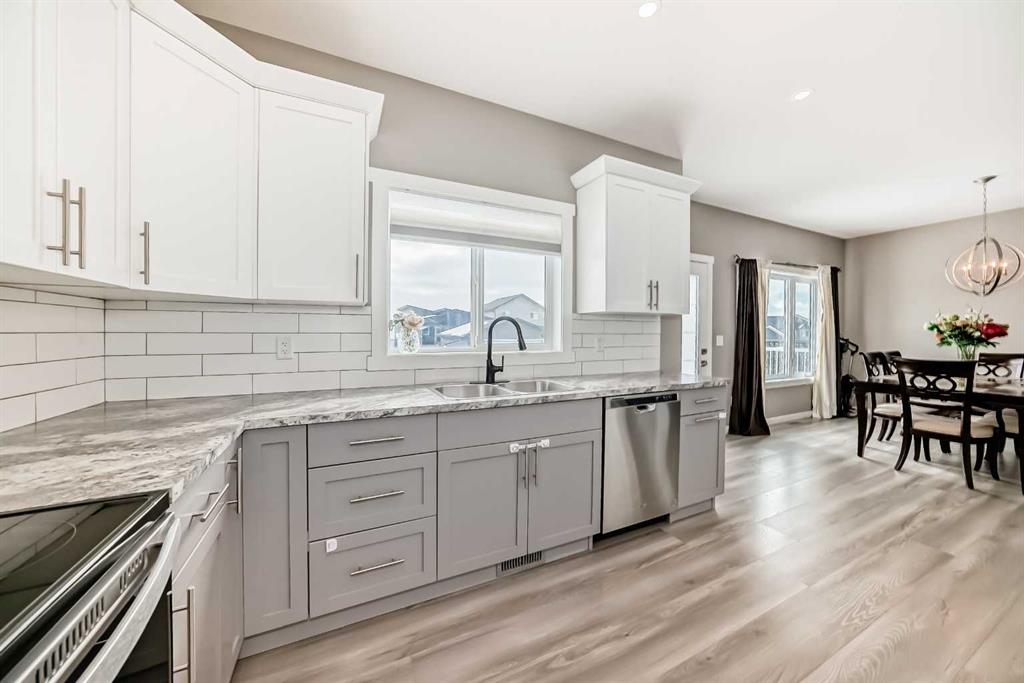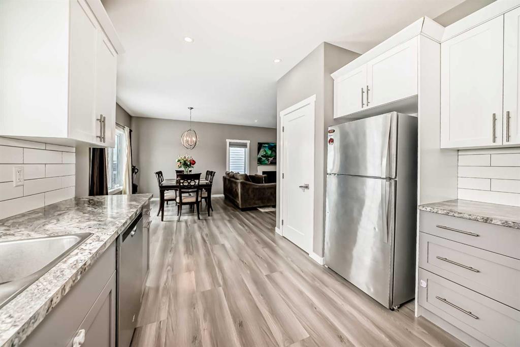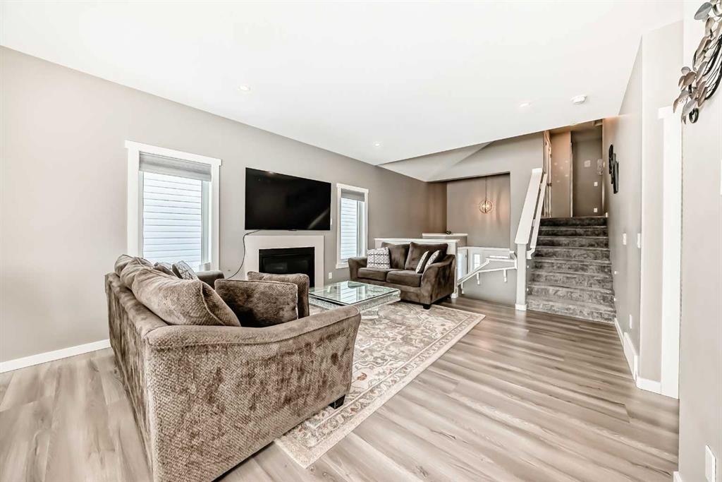 Welcome to this beautifully maintained 2022-built home offering modern design, quality finishes, and exceptional value. Showcasing a bright open-concept layout, the main floor features a spacious living room with a coffered ceiling, textured detail, large windows, durable laminate plank flooring, and a stylish gas fireplace.