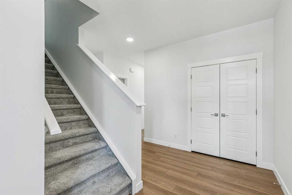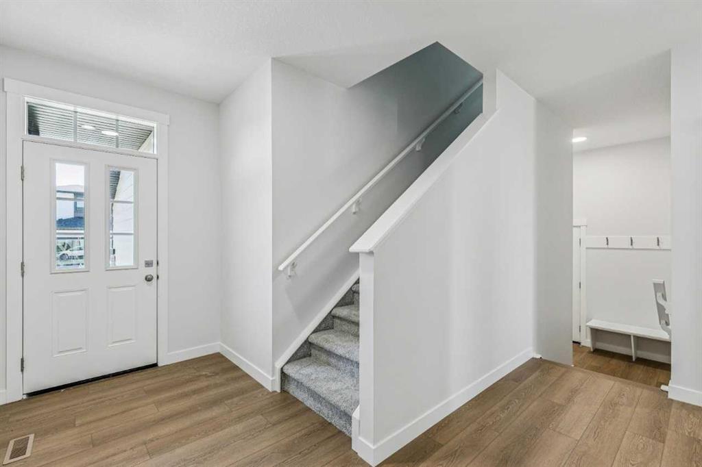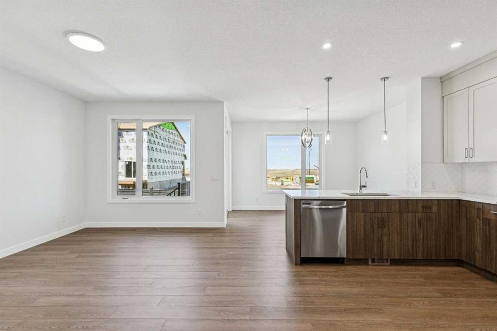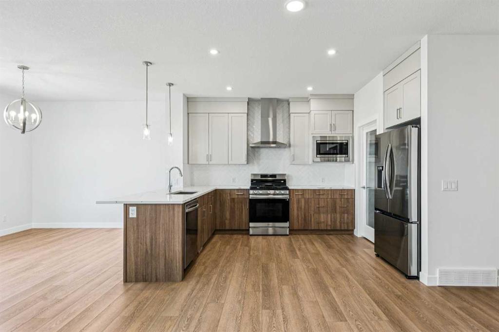 Immediate possession available at 86 Keystone Creek Terrace NW. This 2,184 sq ft NuVista Homes property offers 4 bedrooms and 2.5 bathrooms with a bright, open-concept design perfect for modern family living. The main floor features a stylish kitchen with quartz countertops, premium cabinetry, and a large island that flows into the dining area and great room. A versatile flex space provides options for a home office or additional seating. Upstairs, the spacious primary bedroom includes a walk-in closet and private ensuite, complemented by three additional bedrooms, a full bathroom, a central bonus room, and convenient upper-floor laundry. Large windows throughout enhance natural light, creating a warm and inviting atmosphere. A double attached garage offers parking and extra storage. Located in a desirable community near parks, pathways, schools, and amenities, this move-in-ready home blends comfort, functionality, and modern style. Photos are representative.