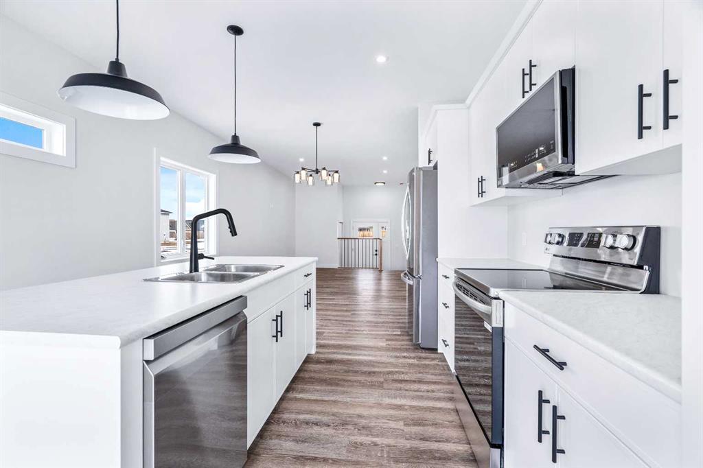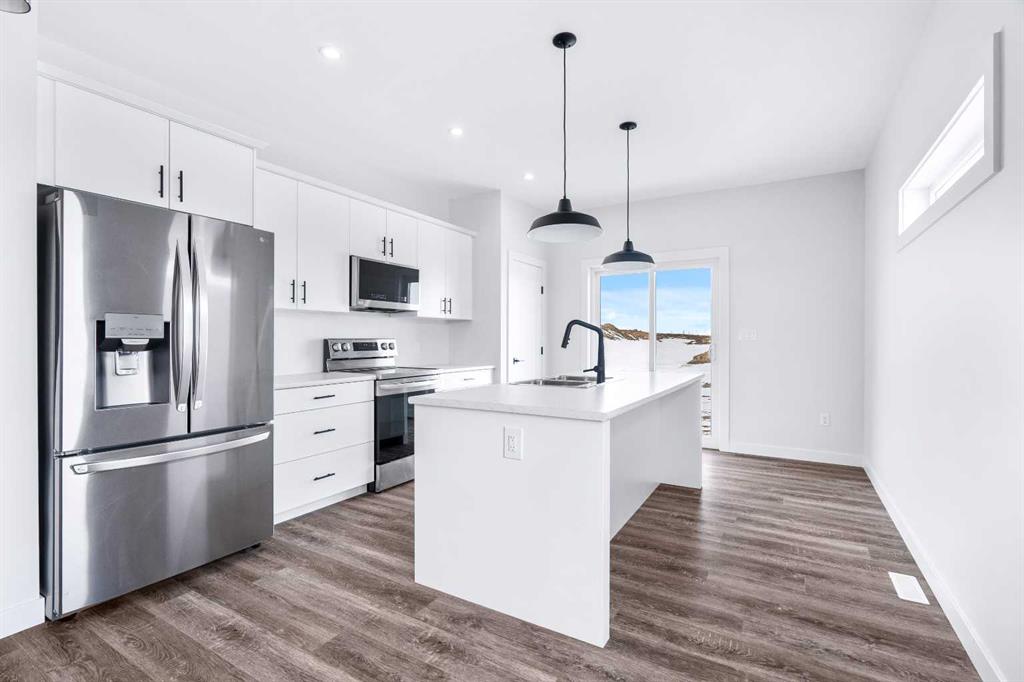 This raised bungalow has all the features and benefits you are looking for in a new home...this 1267 square foot three-bedroom home has one of the nicest layouts we have seen- large master bedroom with ensuite and walk in closet... everything works well for furniture placement and functional living. The large foyer and oversized garage (24\' by 24\') are everything you have been wanting but unable to find. The large island and kitchen design is well suited for entertaining.. so too is the open plan with full sight lines between kitchen/dining and living room areas. The 9-foot ceilings on the main floor and the ICF foundation add extra benefit and livability to this well-built home. The location in a crescent- off the busy streets will be a feature you will come to love.. price includes a 4-piece kitchen appliance package.