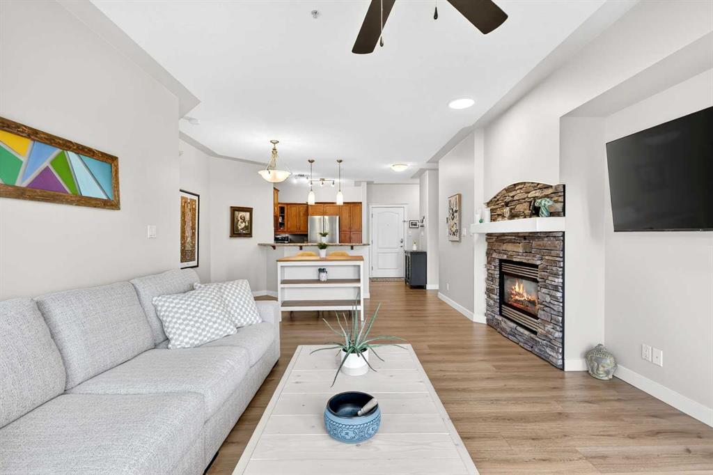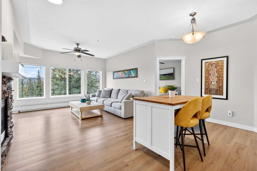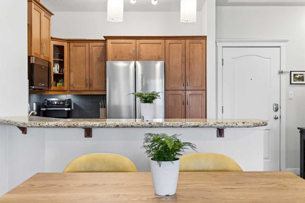 Is there a 2-bed apartment in Discovery Ridge with forest views and over 1000 sqft? This beautifully updated 2-bedroom apartment in Discovery Ridge offers over 1000 square feet of living space, high ceilings, and a rare south-facing balcony backing onto protected forest, combining comfort, privacy, and natural surroundings. Step inside and you are welcomed by a bright, open floor-plan where high ceilings and natural light enhance the sense of space. The living and dining areas flow seamlessly together, creating an ideal setting for both relaxing and entertaining. The kitchen is equipped with brand new appliances and is complemented by fresh laminate flooring, new paint, and updated window coverings throughout, giving the entire home a clean, modern feel. As you move through the home, two generously sized bedrooms offer comfort and functionality. The primary suite serves as a private retreat, complete with a full walk-in closet and a 4-piece ensuite. The second bedroom is equally spacious, perfect for guests, a home office, or additional living needs. One of the standout features is the south-facing balcony, where you can unwind while overlooking the protected forest, offering rare privacy and a peaceful connection to nature. Located in the highly sought-after community of Discovery Ridge, this home provides quick access to Stoney Trail and is just minutes from west Calgary amenities, shopping, dining, and outdoor pathways. This 2-bed apartment in Discovery Ridge is a perfect blend of modern updates, functional design, and natural beauty.