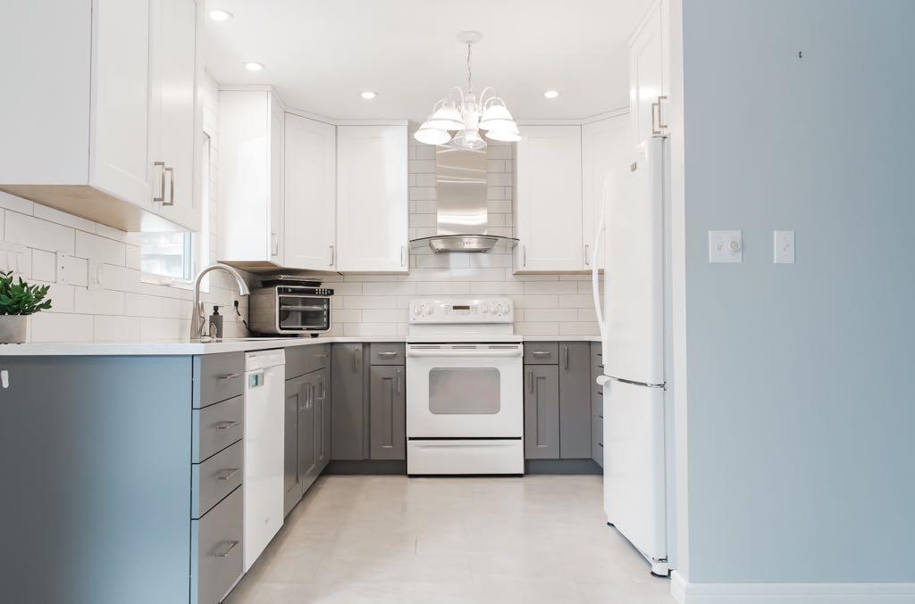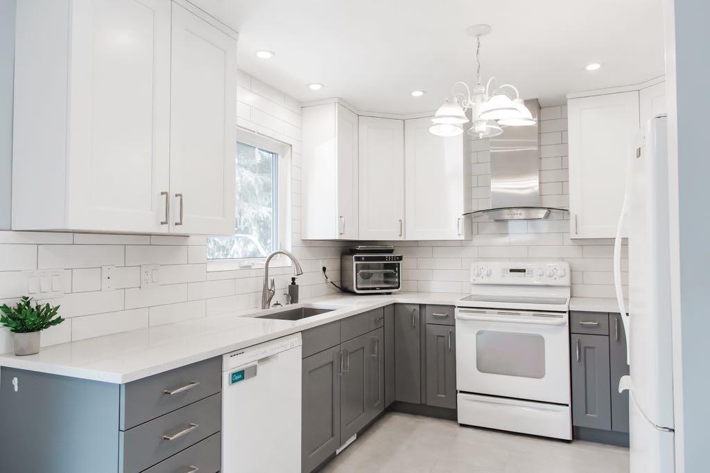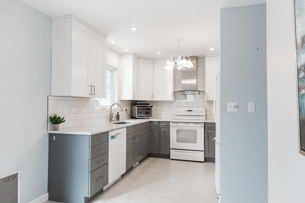 This 1,072 sq ft bungalow offers a functional layout with 4 bedrooms and 1.5 bathrooms (plumbing to add another full bathroom in the basement), blending comfort, updates, and everyday practicality. The main level is anchored by a standout custom kitchen, thoughtfully designed with white and grey cabinetry, solid wood dovetail soft-close drawers, quartz countertops, an undermount stainless steel sink, and a timeless white subway tile backsplash. The layout is both functional and inviting, offering ample prep space and storage, while the clean lines and modern finishes create a bright, elevated feel. The adjacent dining area is filled with natural light and opens onto a two-tiered deck and a private, treed backyard—ideal for both daily living and entertaining. A large main floor living room provides a comfortable gathering space, and both front and side entrances add convenience and flexibility for everyday use.