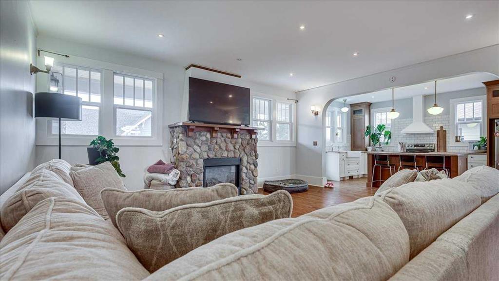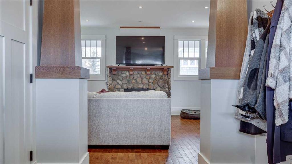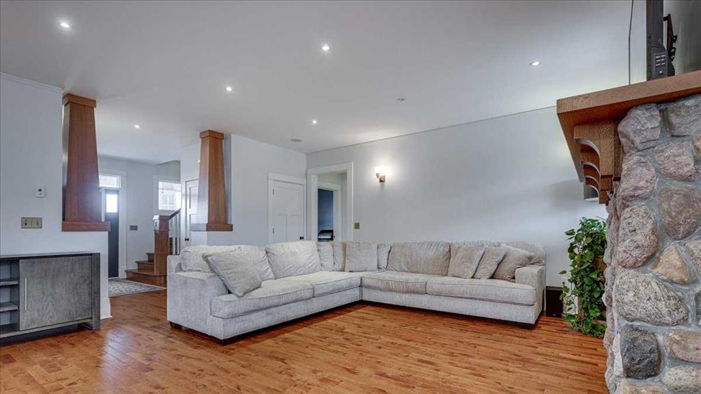 Located in one of Central Alberta’s most sought-after lake communities, this Craftsman-style home blends character, comfort, and flexibility just steps from the water. The inviting front veranda sets the tone, while the interior offers a bright, open-concept main floor with hardwood flooring, large windows, and a stone-faced fireplace that anchors the living space.