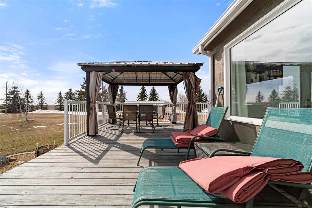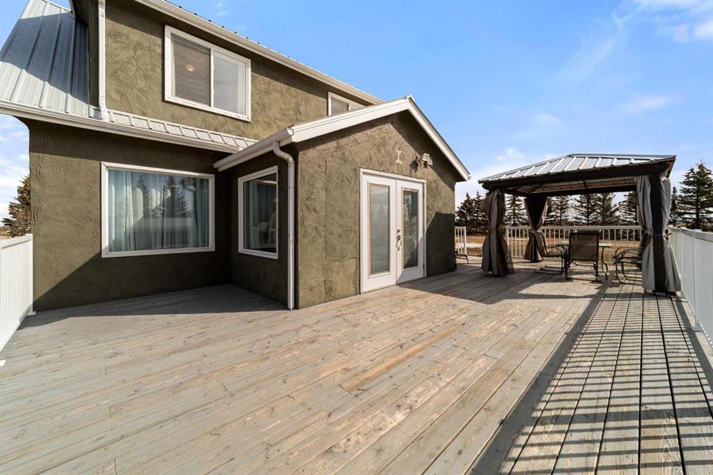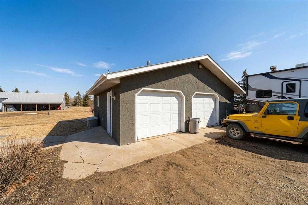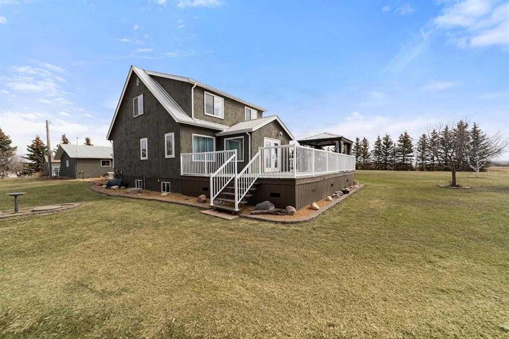 Spacious and well-maintained acreage offering the perfect blend of comfort, functionality, and outdoor living! This property has seen numerous updates over the years, including a metal roof (approx. 10 years old), updated attic insulation, vinyl windows throughout, central air conditioning - and it was professionally lifted onto a new concrete foundation in 1996! The main floor is designed for both everyday living and entertaining - starting with the MUST have of any Alberta acreage - the mud room, which not only has its own wash sink, BUT also has in-floor heating! Into the beautiful and bright kitchen, which features stainless steel appliances, an island, abundant counter space, a coffee bar area, and large windows that flood the space with natural light. Enjoy the multiple living areas, including a dining space, cozy living room, and a sunroom/den with direct access to the deck. Finishing off the main level is a well-appointed 4-piece bathroom with a corner jet tub, tiled shower, and convenient stackable laundry. Upstairs, you’ll find four bedrooms, including a spacious primary suite with a walk-in closet, along with a beautifully appointed bathroom featuring a soaker tub, separate shower, and elegant chandelier. The lower level provides excellent storage and utility space, with in-floor heat, a cold room, and an upgraded furnace (installed in 2015 & a new motor in 2026). Outside, this property truly shines - not only do you have plenty of interior entertaining space, but you have a large deck with a pergola as well as a concrete patio area for all your needs (complete with wiring for a hot tub!) The multiple outbuildings include a heated and powered detached garage, an additional garage (20x36), a shop (30x60) with in-floor heat, water, and an in-floor drain system, a bathroom w/laundry & two 12x32 covered overhangs for extra storage. There is a chicken coop with power and heat, and another shed with power! Surrounded by mature trees and a well-established shelterbelt, the yard also features raspberry bushes and elderberry trees — offering privacy, beauty, and a true country lifestyle.